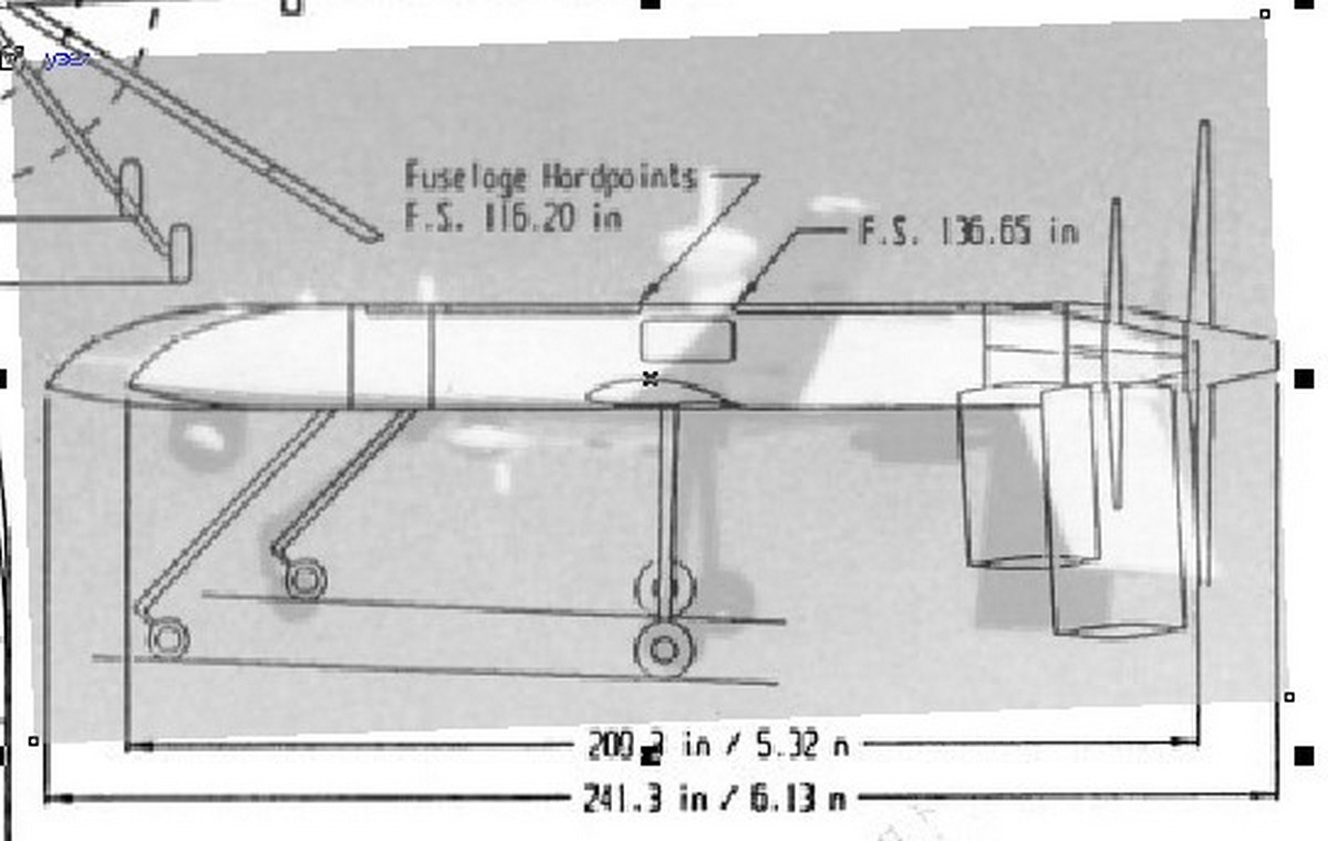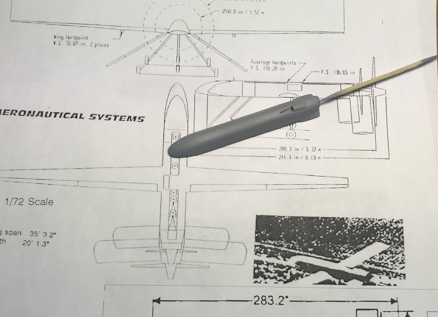 За основу взял крылатую ракету AGM-8(от B-1B), размер и сечение корпуcа, отлично подходит как загатовка под БПЛА...