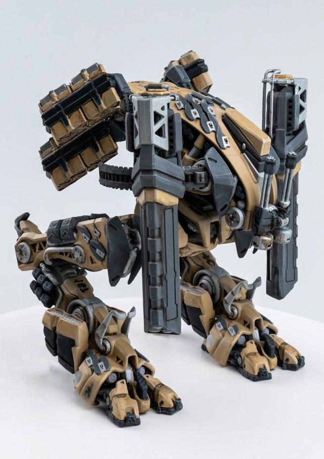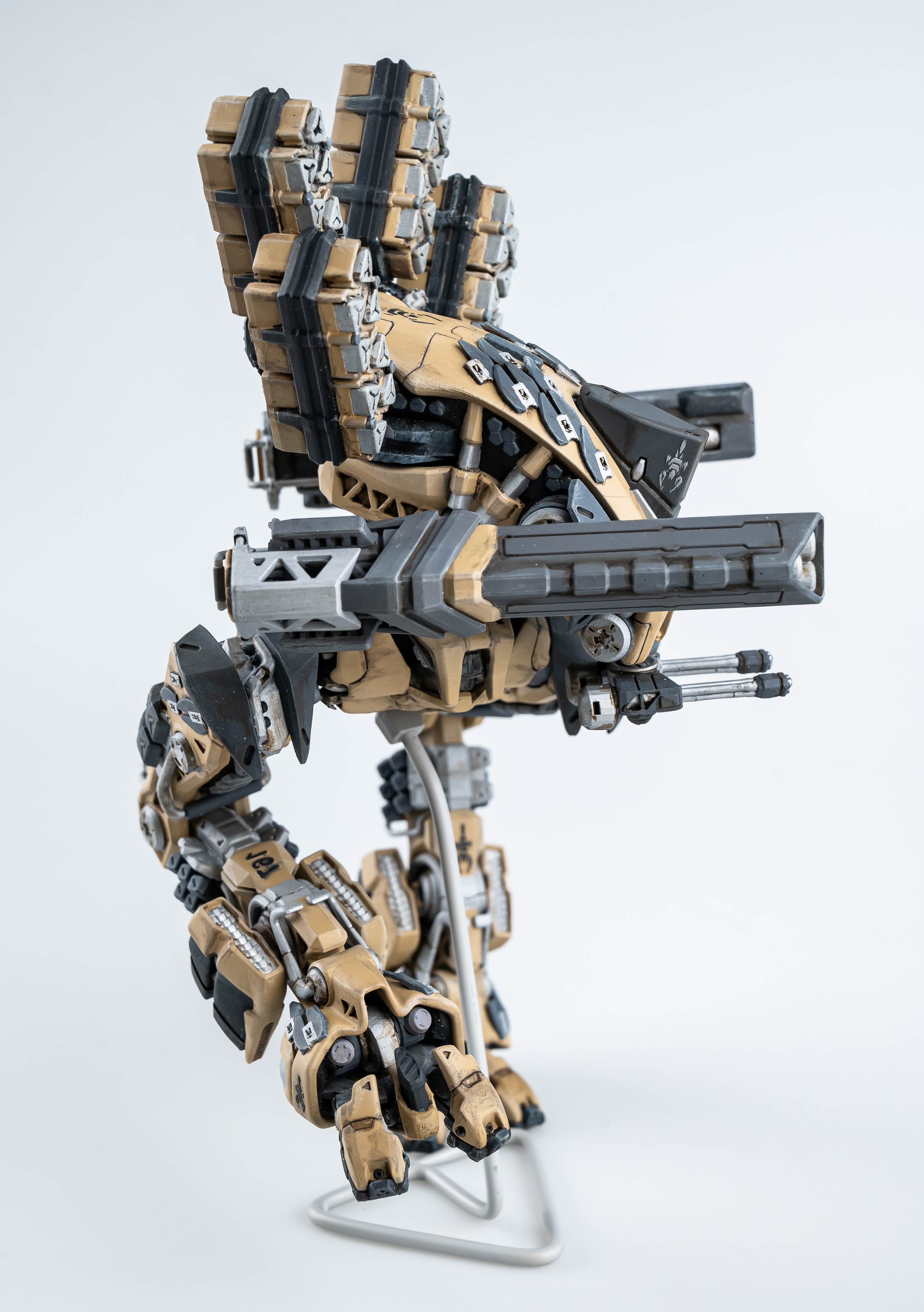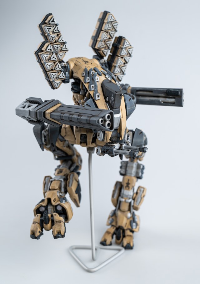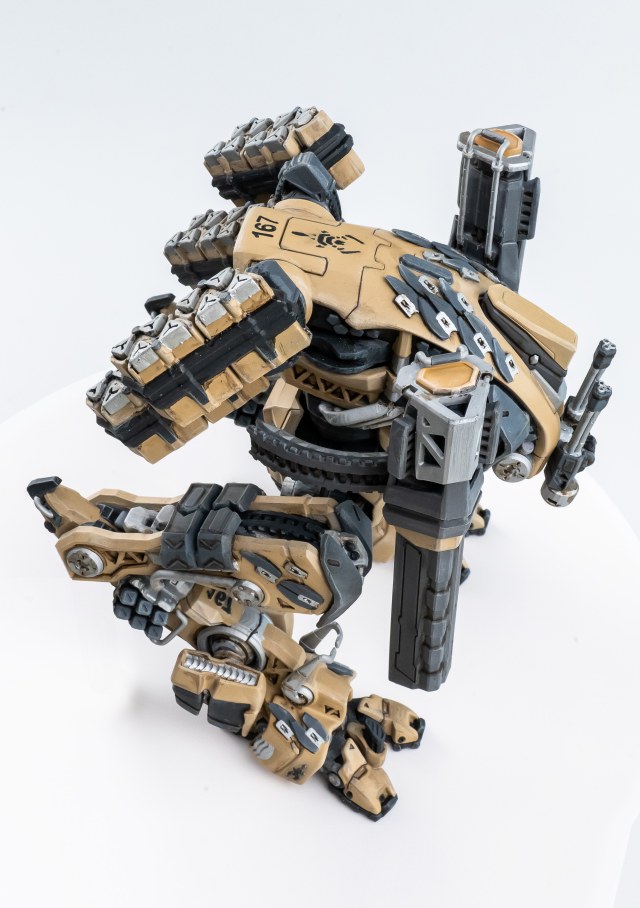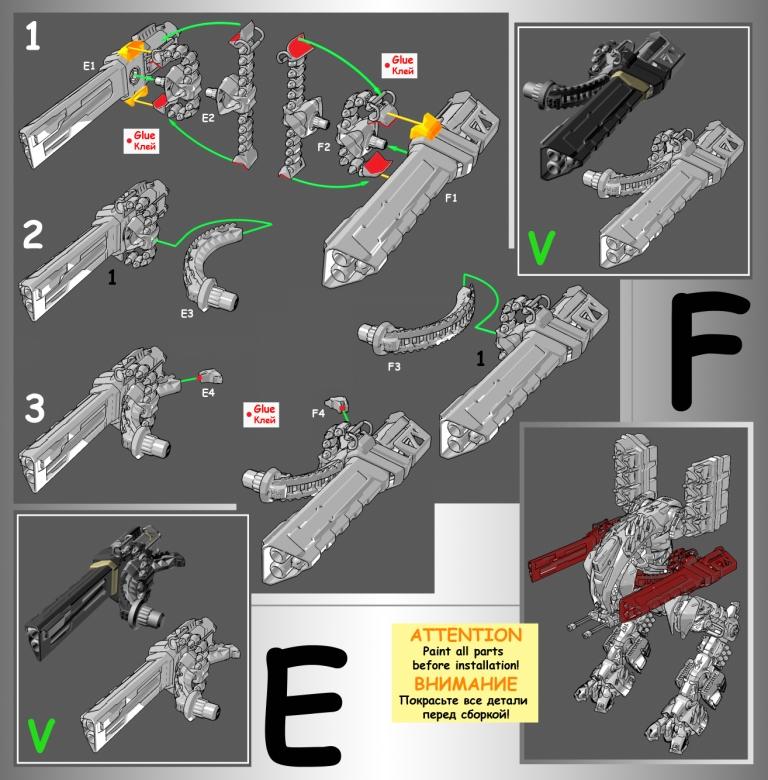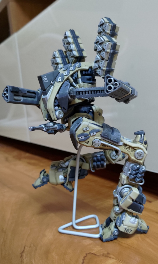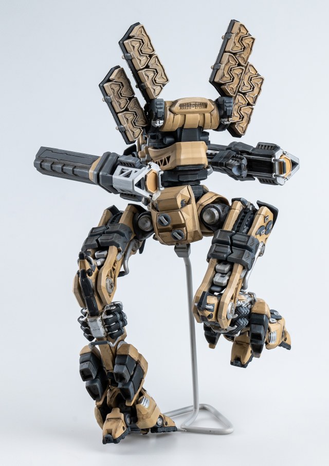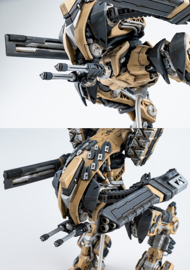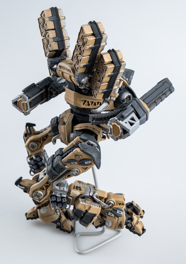 Весь торс с вооружением можно снять. Он собран без клея и позволяет менять кабину пилота, пушки и ракетные установки на альтернативные.