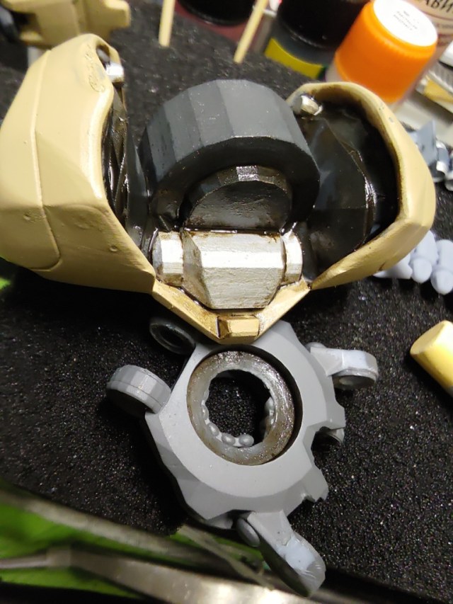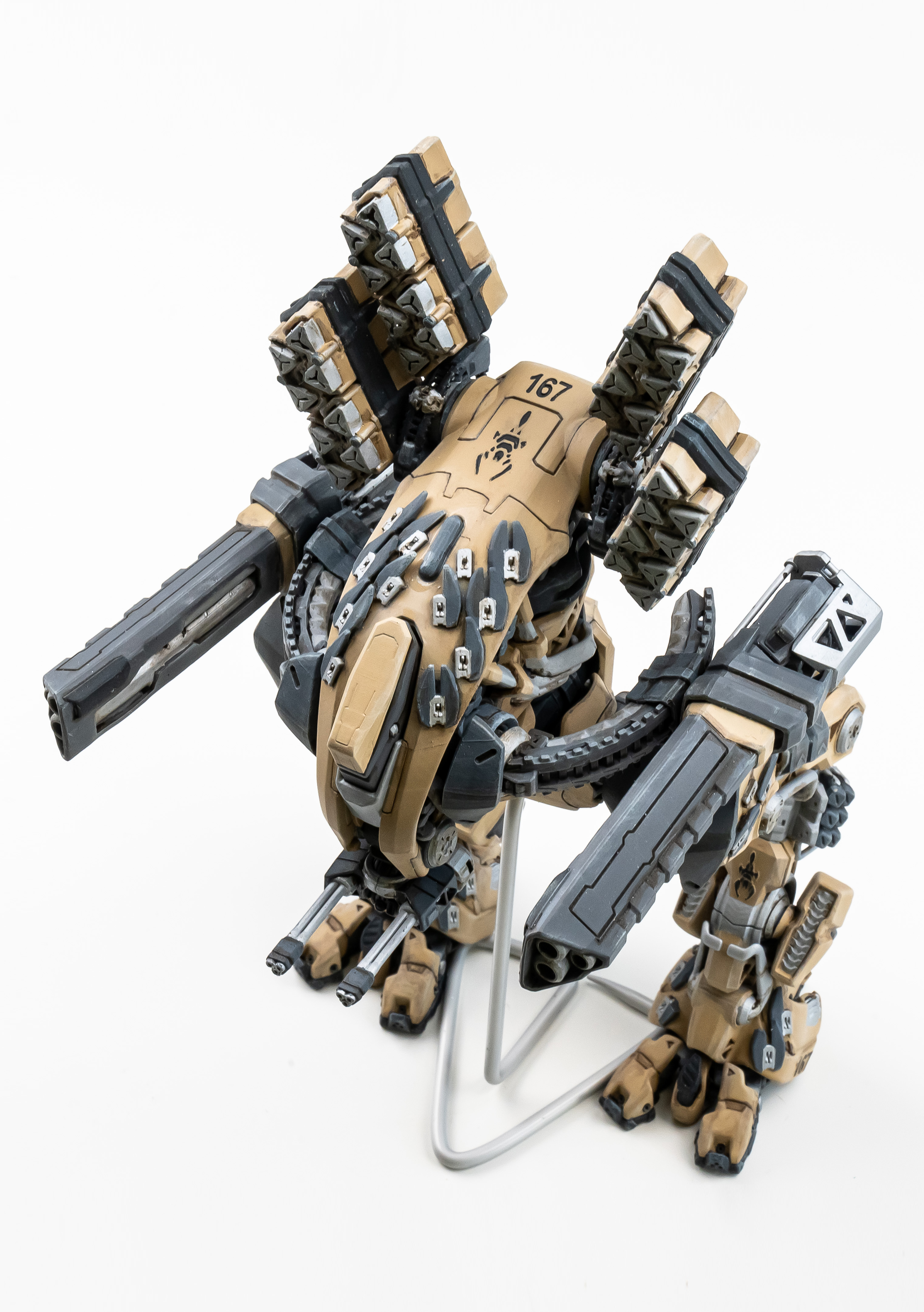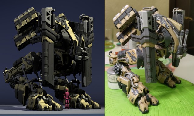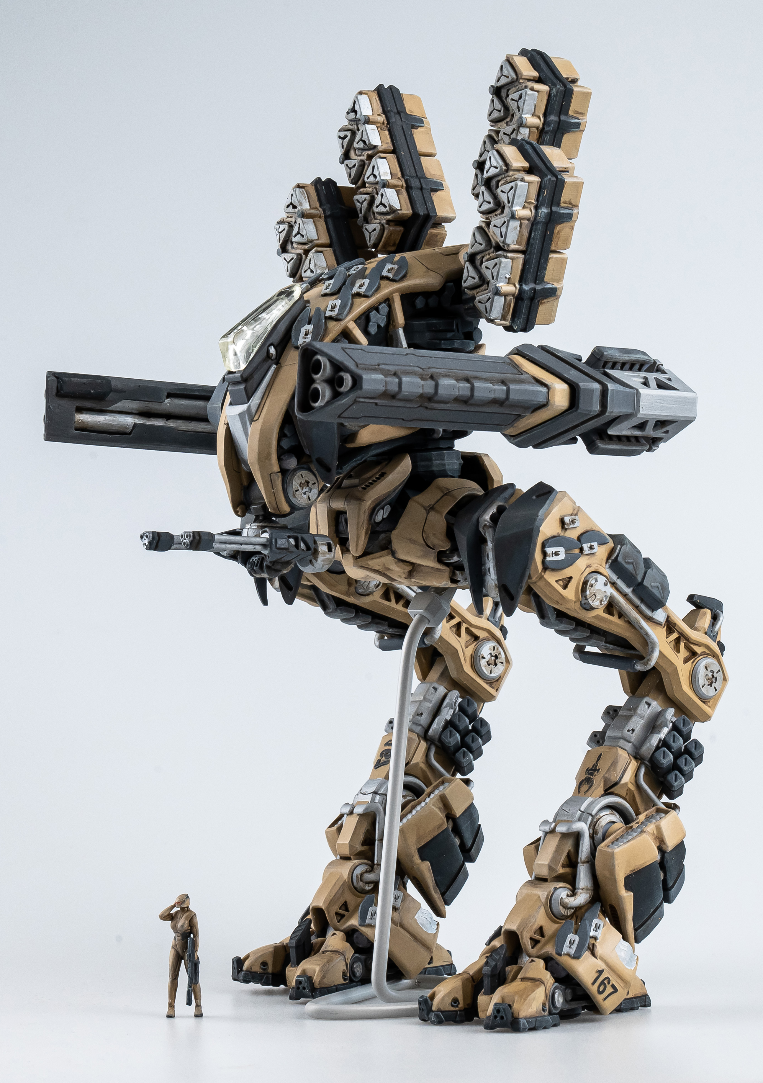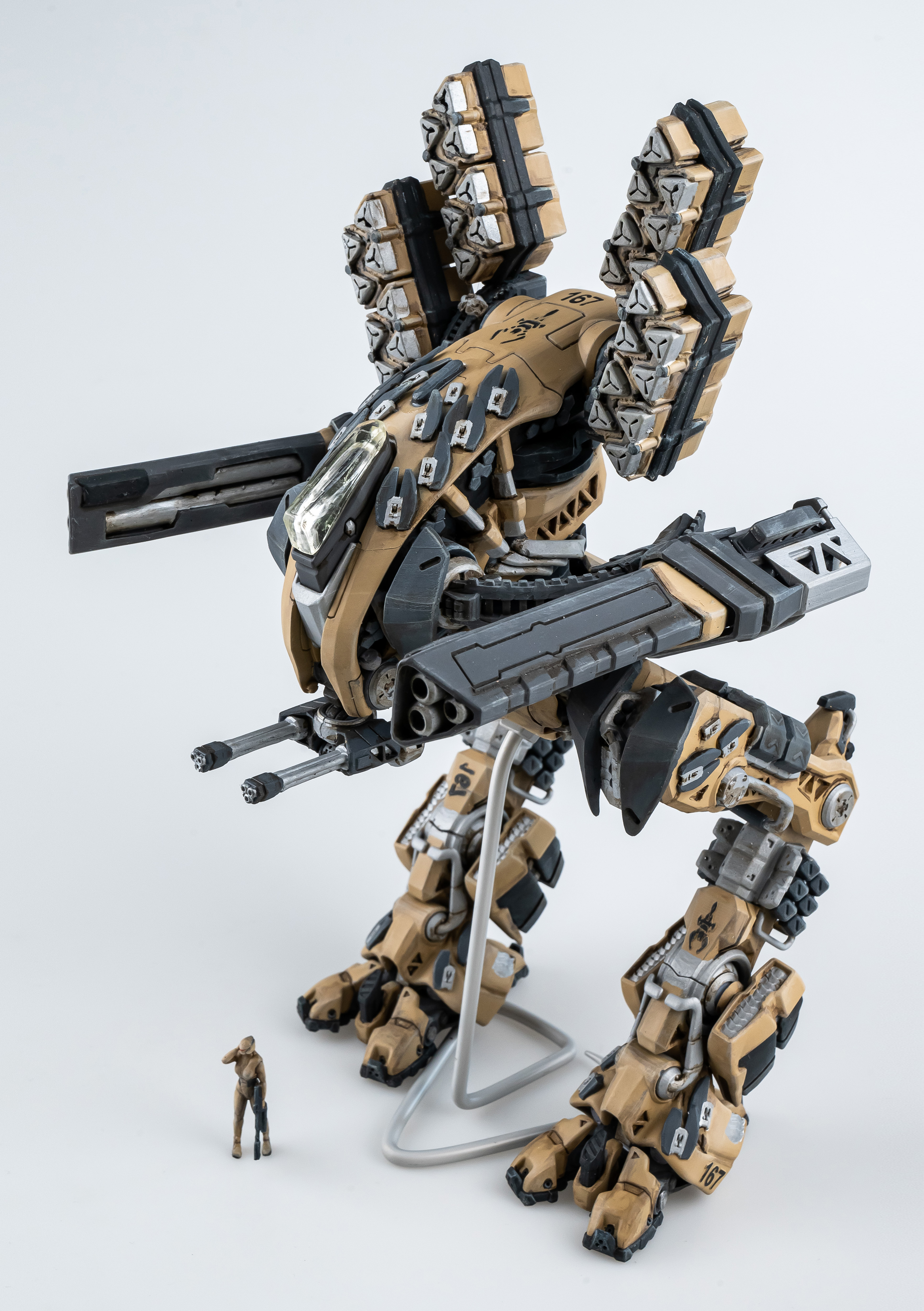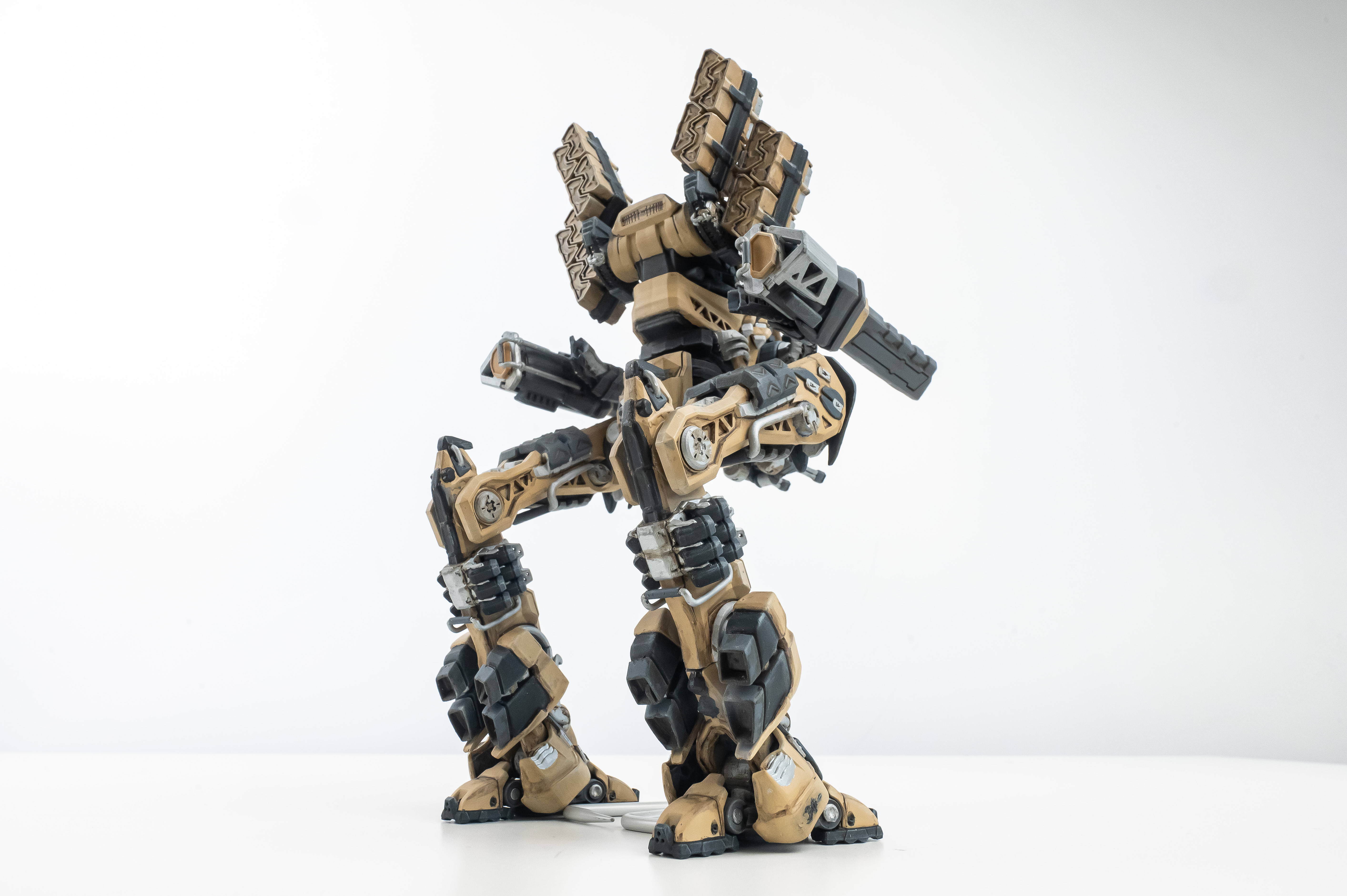 Весь торс с вооружением можно снять. Он собран без клея и позволяет менять кабину пилота, пушки и ракетные установки на альтернативные.