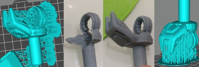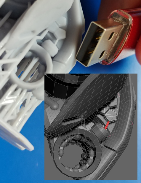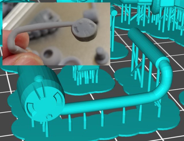 С учетом будущей печати, сразу создавал дополнительную геометрию, для того что бы не корячить поддержки в неудобных местах. Сделал даже тоньше стандартных поддержек, потому что элементы небольшие и можно было убрать без проблем.
