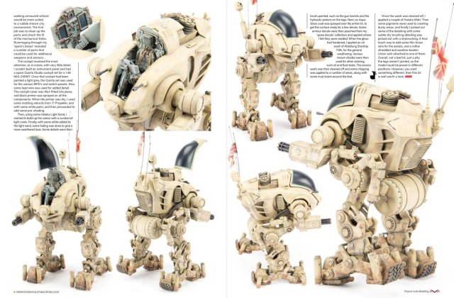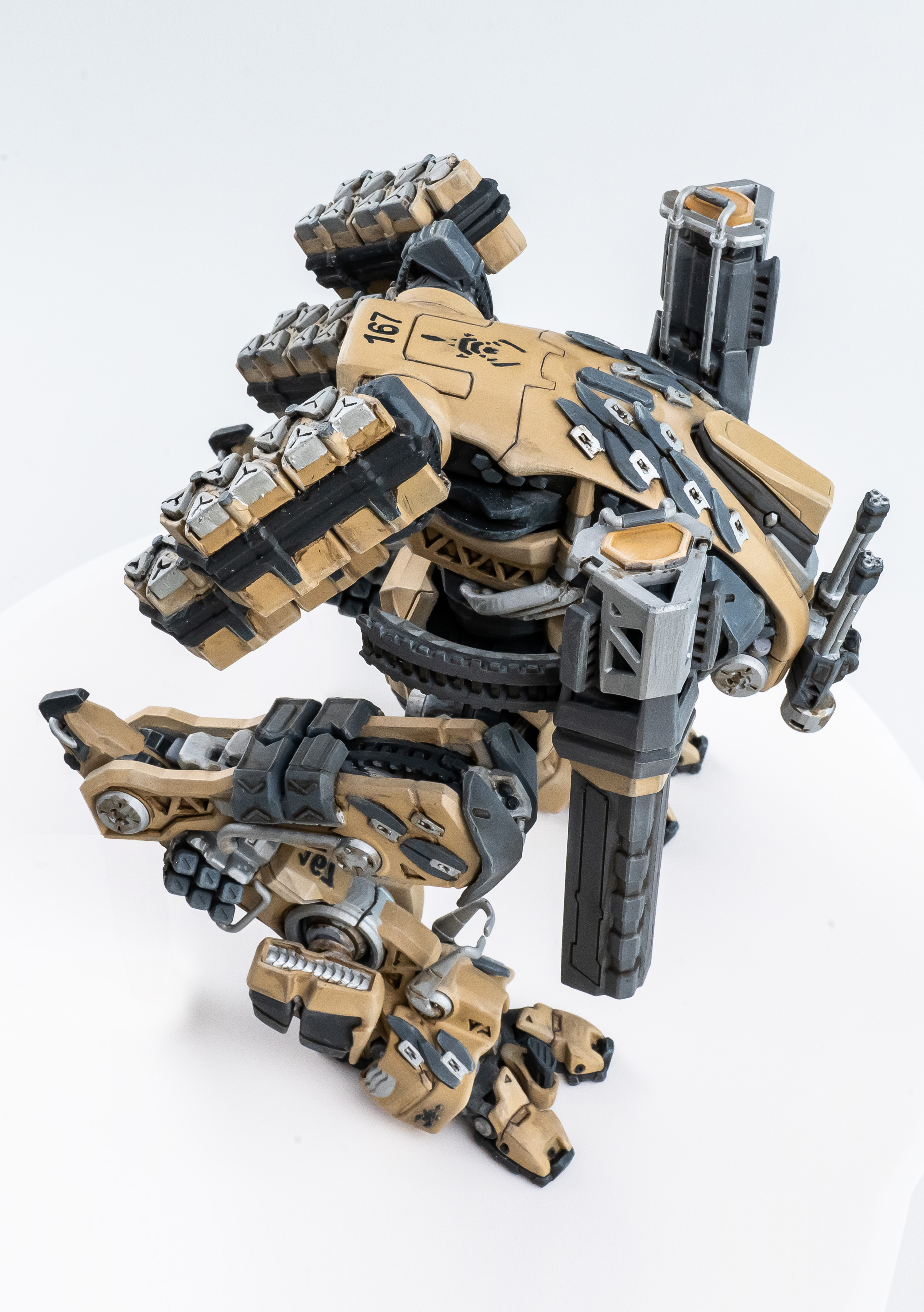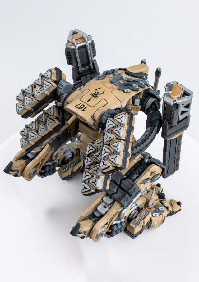 На моделях реальной бронетехники эти приёмы оправданы и на полочке смотрятся очень даже классно. Но мне надо убедить зрителя в том, что робот реально эксплуатируется в пустынной местности – он не ползает на брюхе в мутной грязи и не царапается всеми вертикальными поверхностями о дома, деревья и другую технику.