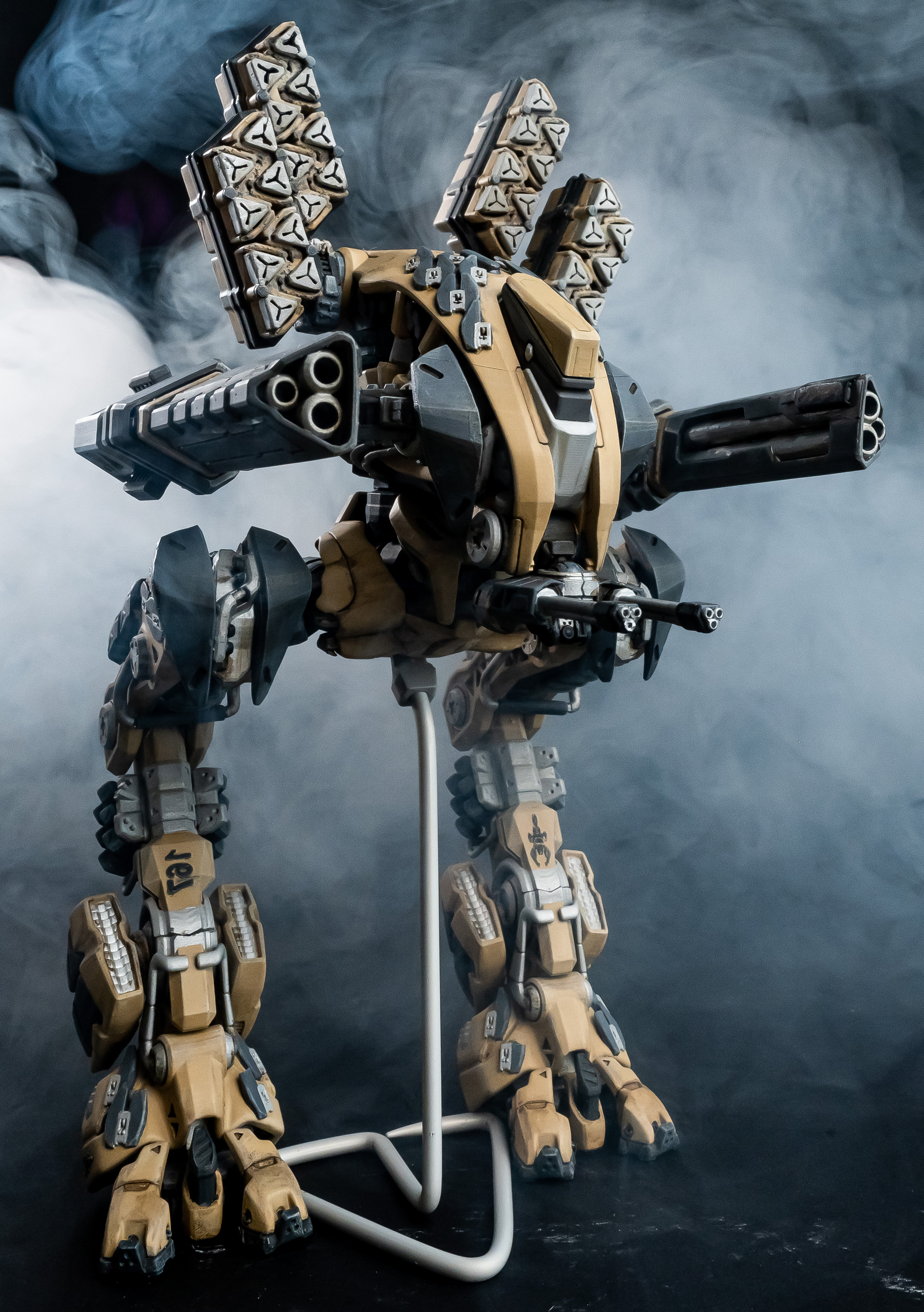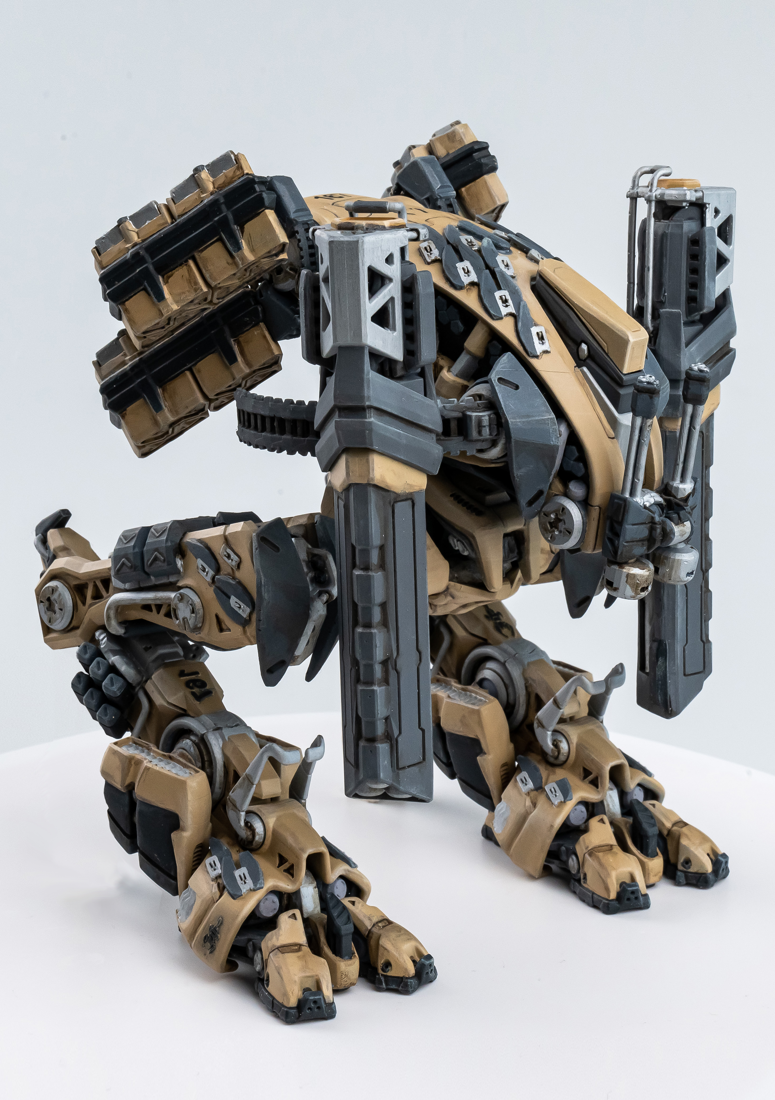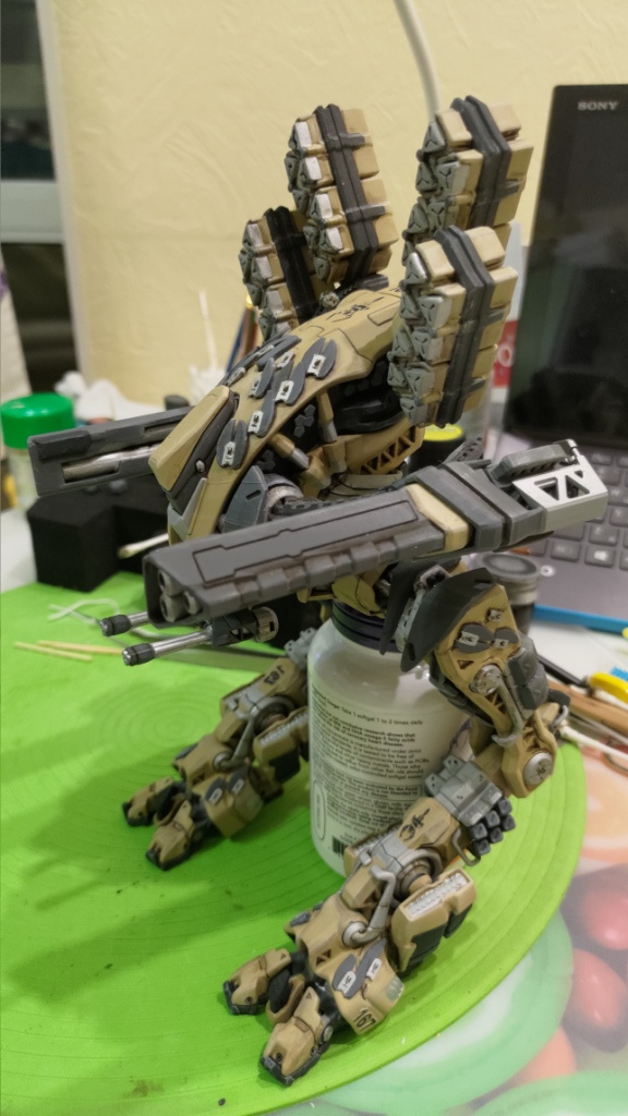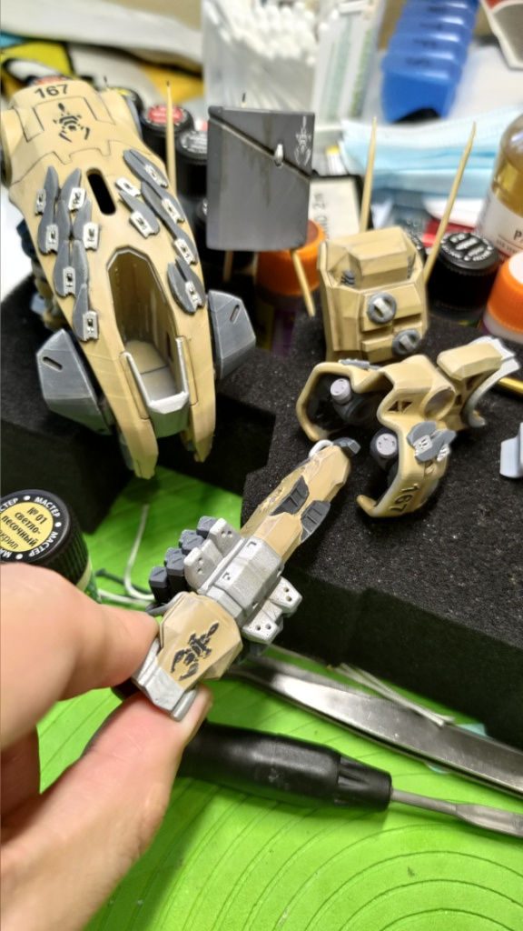 Я много анализировал фото “пустынных” пиндосовских Абрамсов и Брэдлей и пришёл к выводу что нужно очень аккуратно ”обгаживать” робота, так что бы не казалось что с ним пару недель играл ребенок и теперь робот заботливо поставлен мамой на полку.
