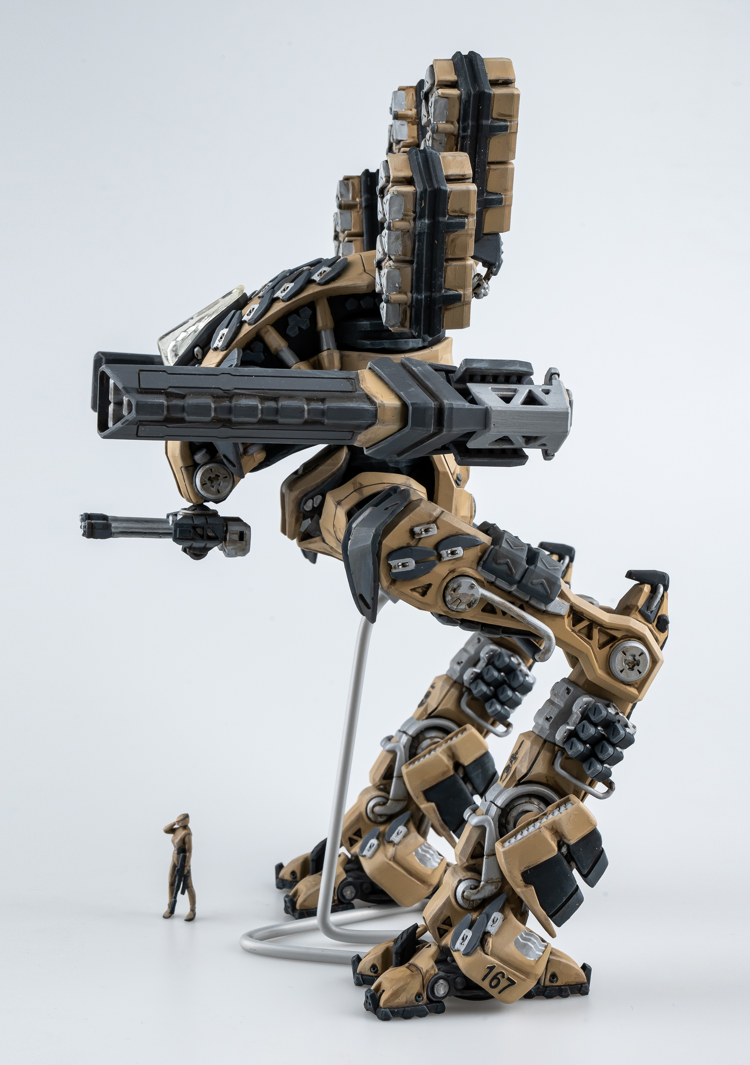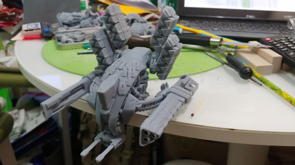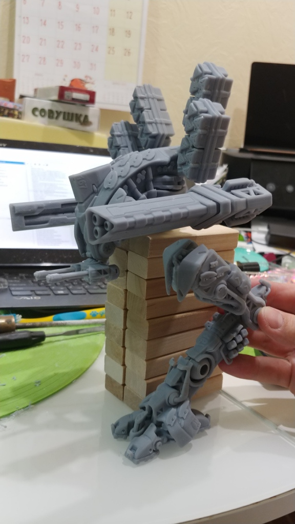 Модель весит почти килограмм и суставы вес не держат, а по задумке была полностью ActionFig. Обычный модельный пластик (самый дешевый) не позволил сделать крепкое, подвижное и пластичное для суставов. ABS пластик дороже в два раза и не решит все проблемы(