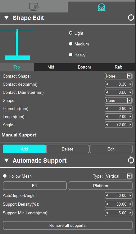Затем открываем файл в стандартной программе принтера, позиционируем относительно стола принтера и ставим поддержки (на скриншотах ранее показано как это выглядит).