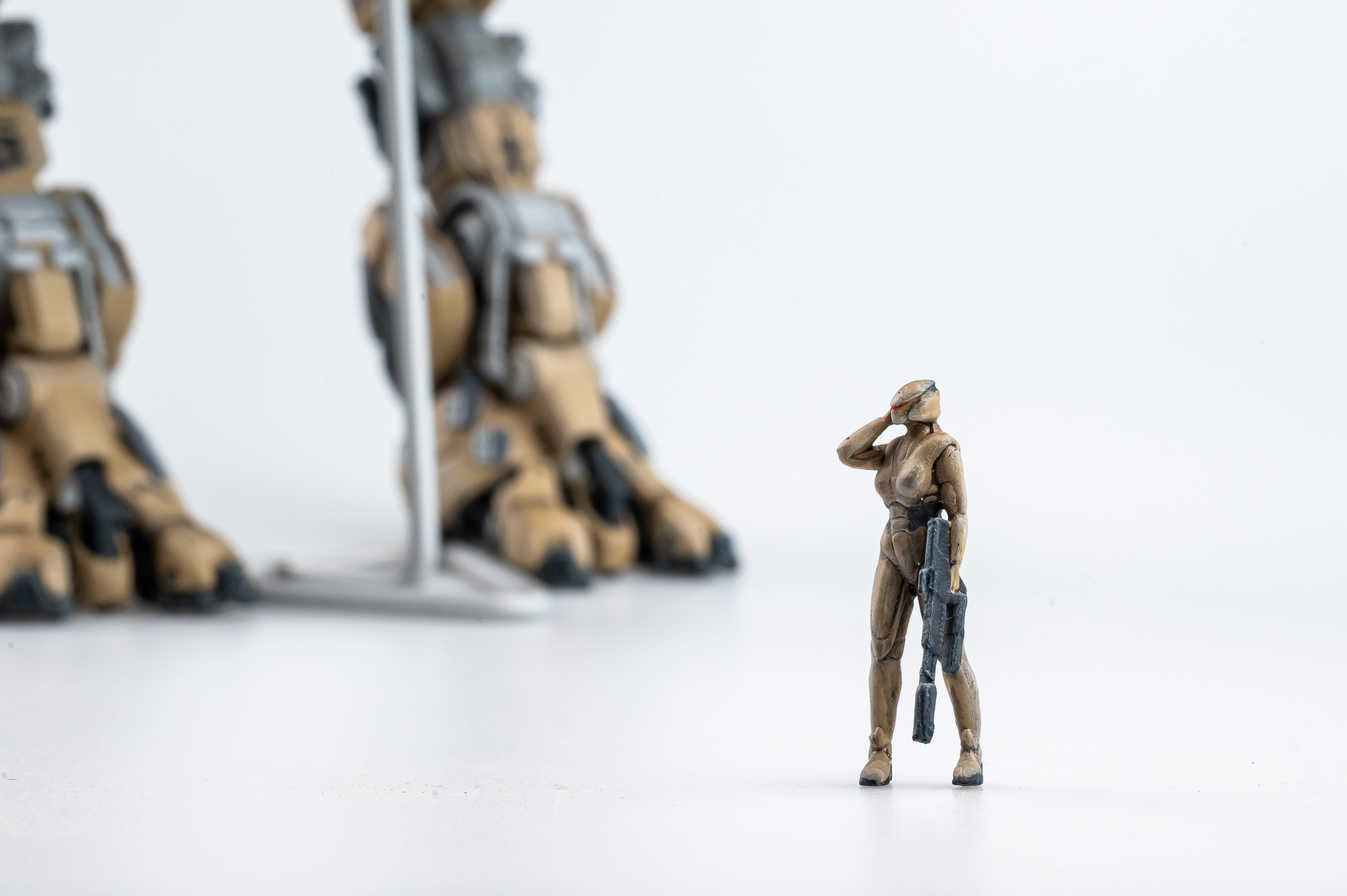Да какие тут могут быть замечания... Так если, по мелочи. За что взгляд зацепился, так это шершавенькие поверхности. Можно, конечно, сослаться на литьё, но мы же понимаем, что в далёком будущем формы для литья роботов с зеркальными поверхностями будут Соответственно, поверхности тоже должны быть гладенькими, как мне кажется. Ну и, плюс к этому, а может и вследствие этого, металлики не выглядят металлическими.