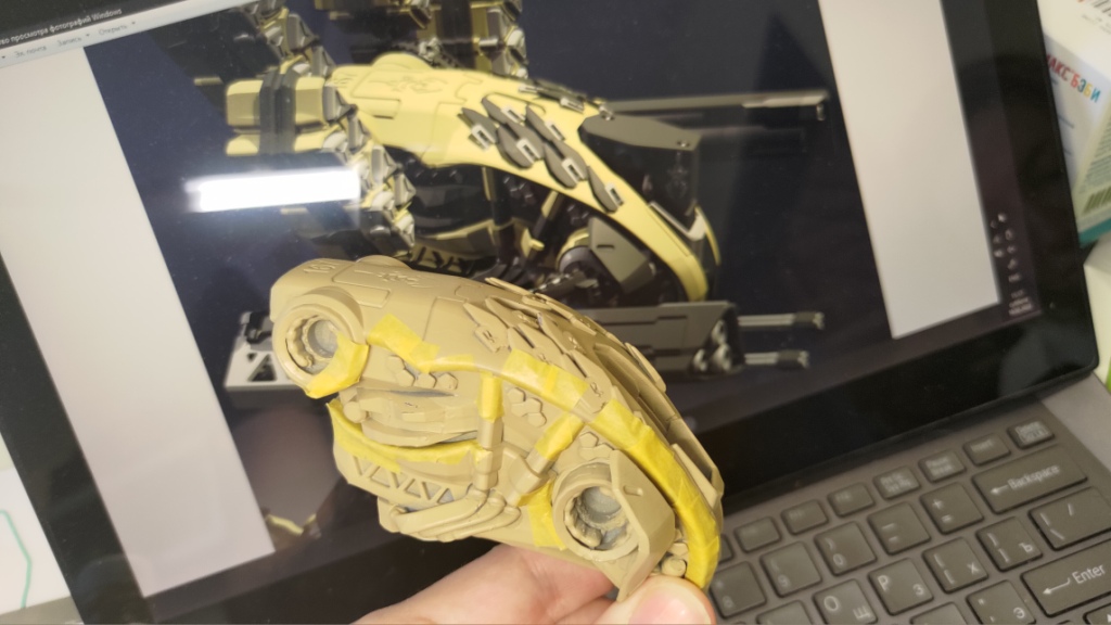 Это усложнило модель тем, что количество отдельных деталей выросло в разы, но зато позволило не заморачиваться с проработкой каждой детали до “скульптурных” мелочей (всё равно лишнее отломится как у статуи Венеры).
