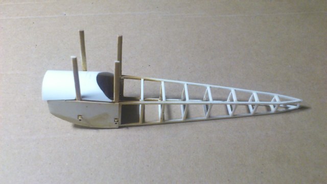 Хвостовое оперение из пластиковых прутков 1 мм. Зделал шаблоны по ним выгнул каркасы, перемычки в местах склейки обмазал жидким пластиком, после высыхания обработал. На места навески рулей приклеил п-образные скобы после чего вырезал части прутка в районе паза.