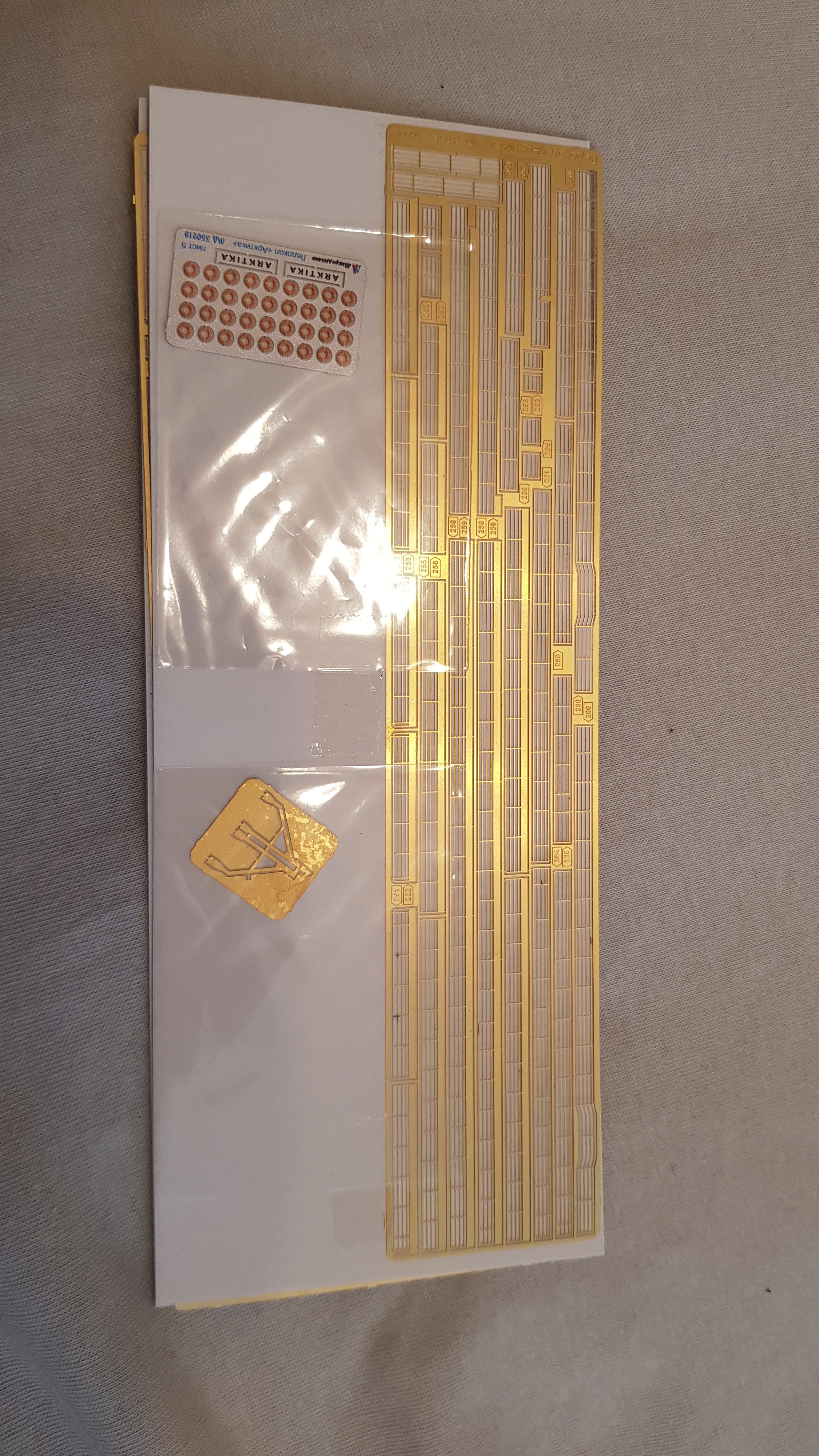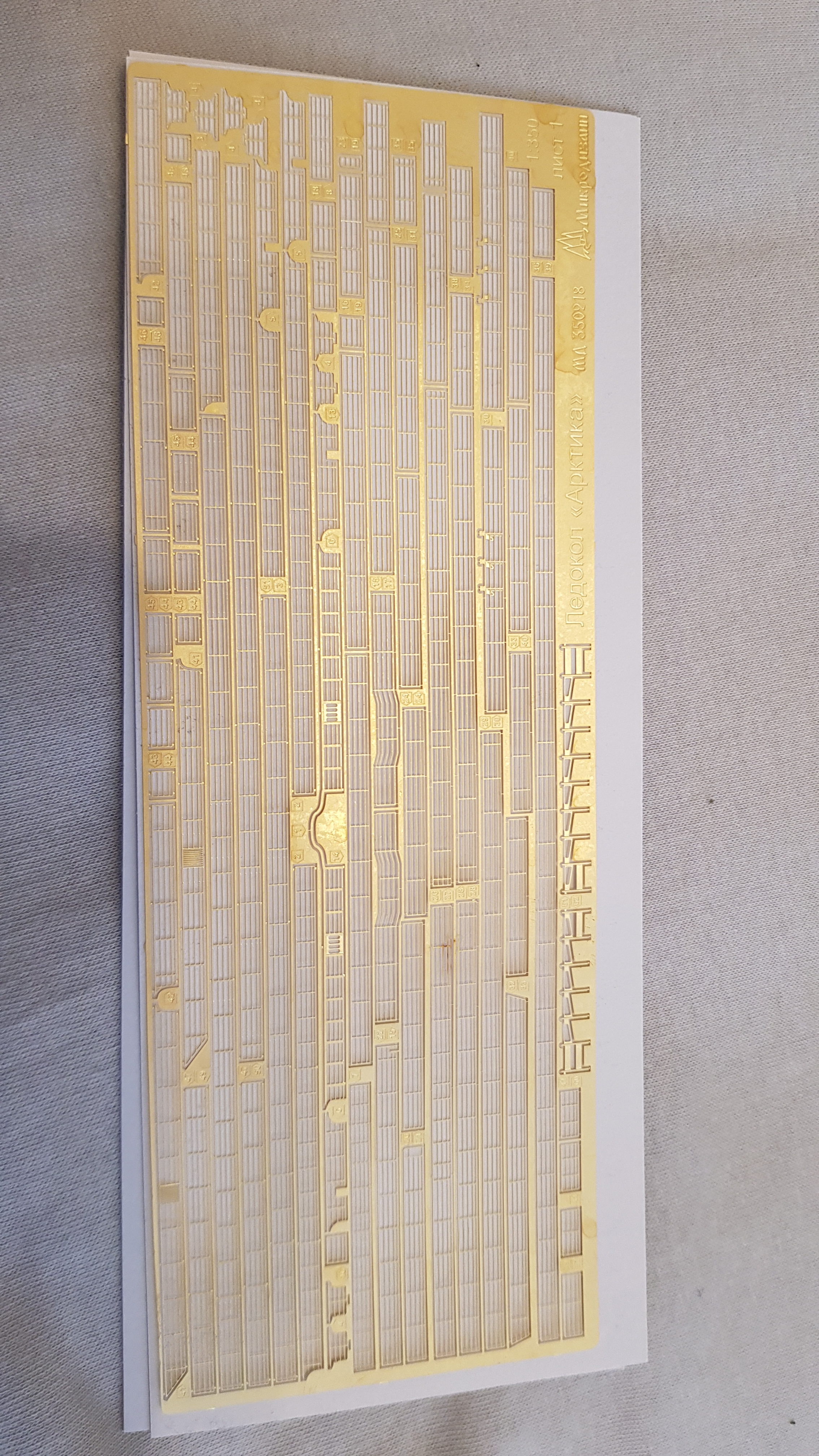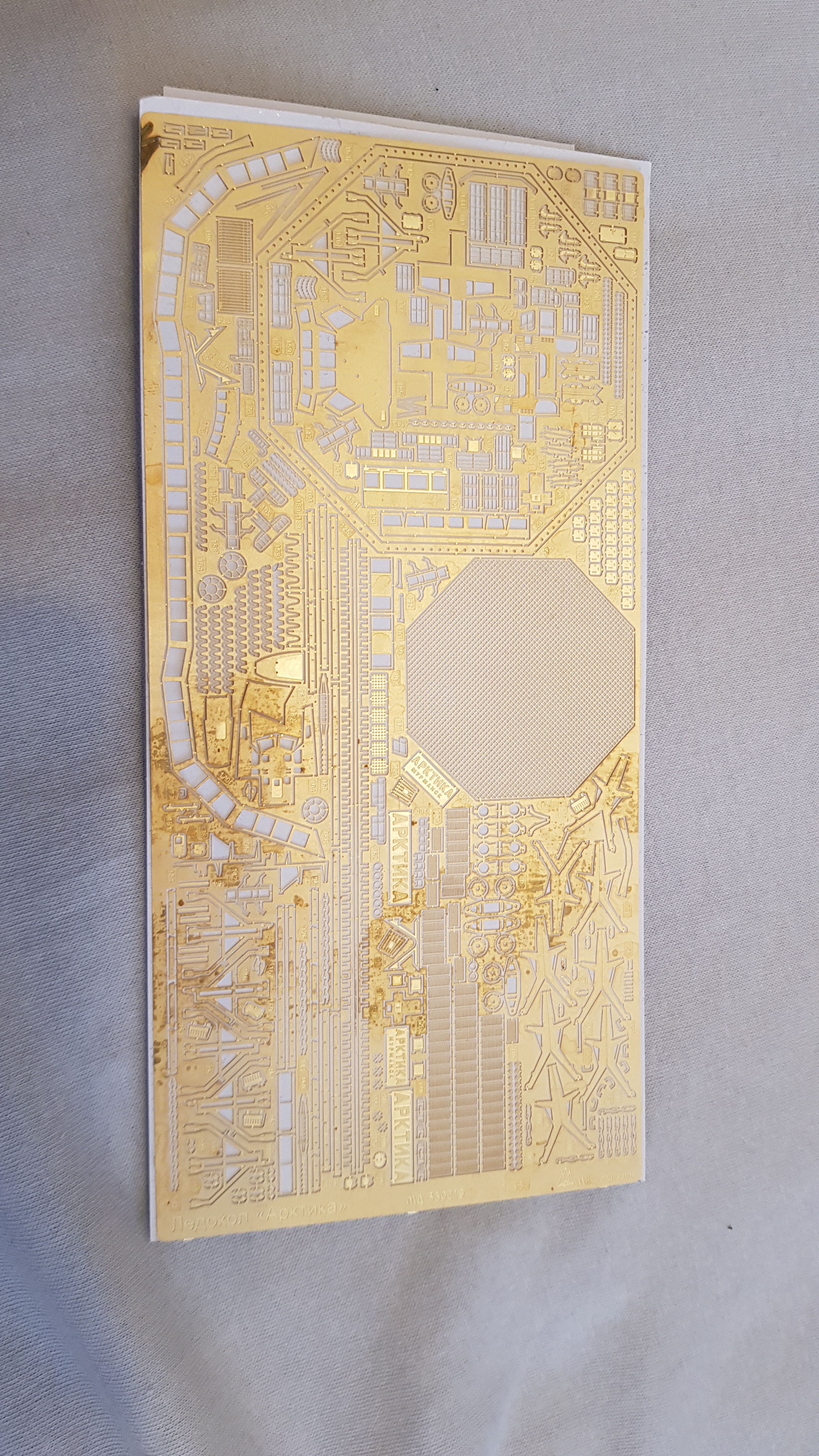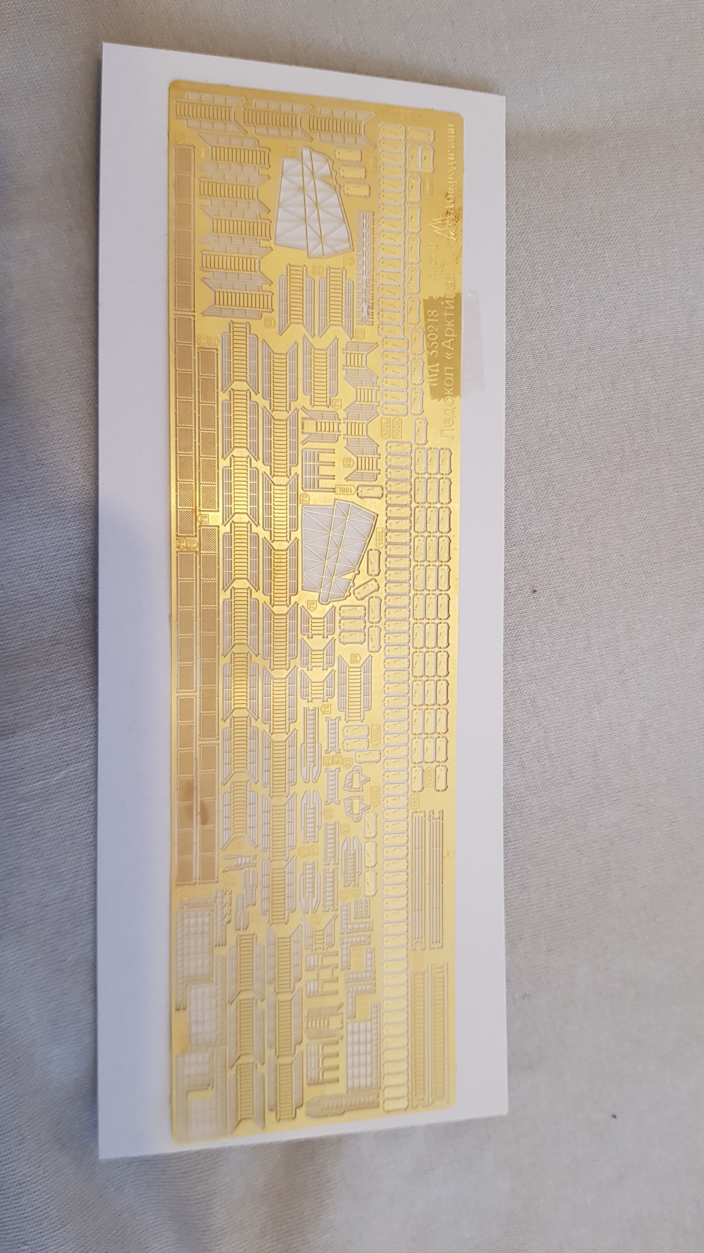 Всех приветствую! Решил я в это непростое время поддержать отечественного производителя. На текущую стройку эсминца Kagero так и не пришло ни чего, на запланированную тоже сейчас проблемы что то достать. И вот, чтоб не скучать, начну гражданский флот. Все закупилось одним махом и через 3 дня уже было доставлено. Потрясающе!!! Приобретён сам набор от "Звезды", якоря и винты от "Эскадры", полный набор травления от "Микродизайна", набор масок иллюминаторов от "КАВ моделс". После осмотра всего этого изобилия остался в недоумении от винтов. Качество очень смутило... мягко говоря. Хотя я первый раз пользую отлитые винты. Может они таки и должны быть убогие. Якоря вполне достойно сделаны. Травление вроде не вызвало нареканий. Сам набор на первый взгляд ни чего, но есть одна бочка дегтя. На литнике с палубами и вертолетной площадкой элемент главной палубы согнут буквой "S" если смотреть в торец. Вертолетная площадка выгнута чашей. Инструкция.., скажем так можно и лучше, прям вот лучше можно. Инструкция к травлению цветная, читается хорошо, крупно. На пяти или шести отдельных листах. Как мне показалось немного систематизации не хватает. Стройка покажет. Работа начнётся с 10-го числа, по возвращении домой