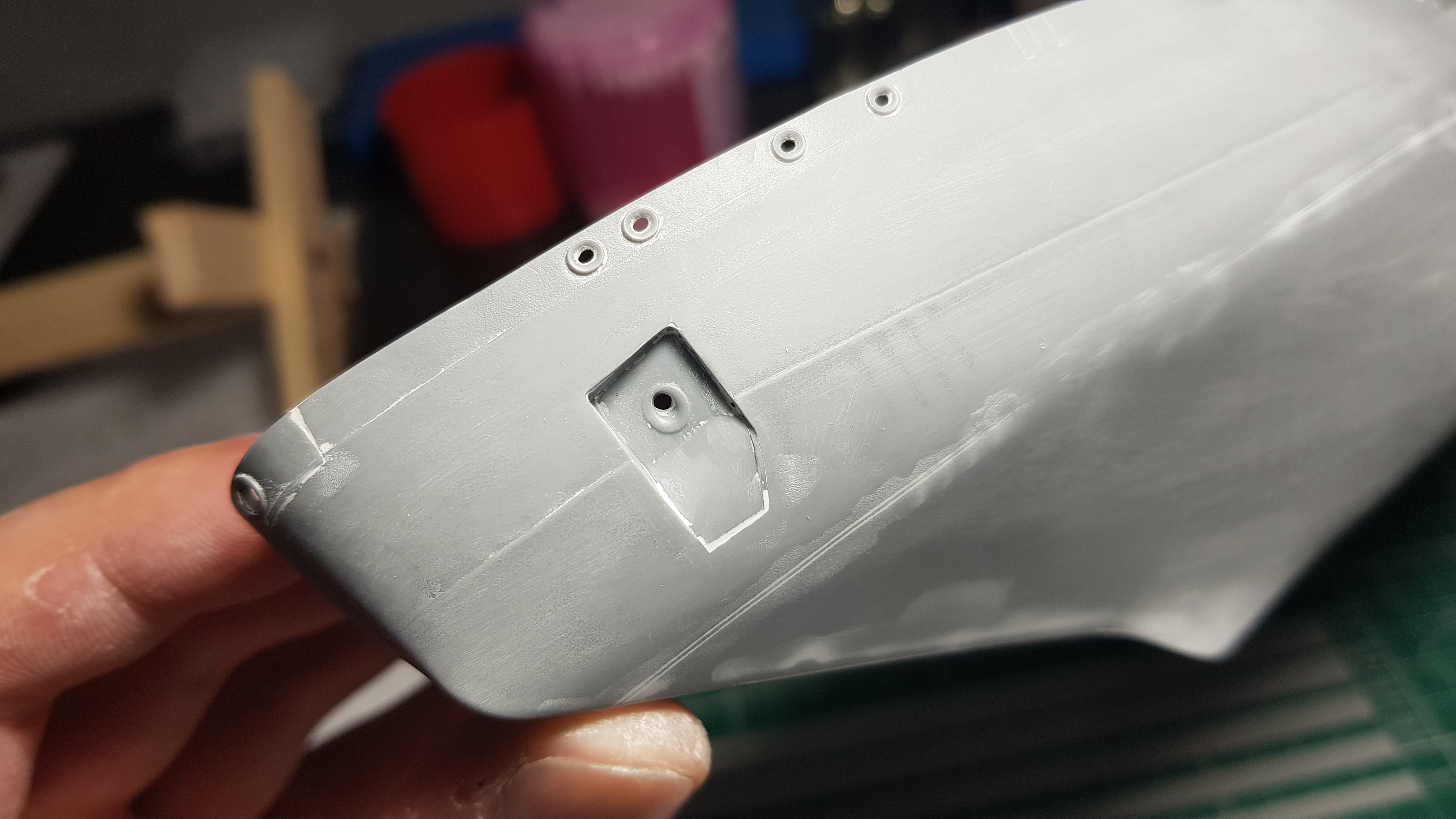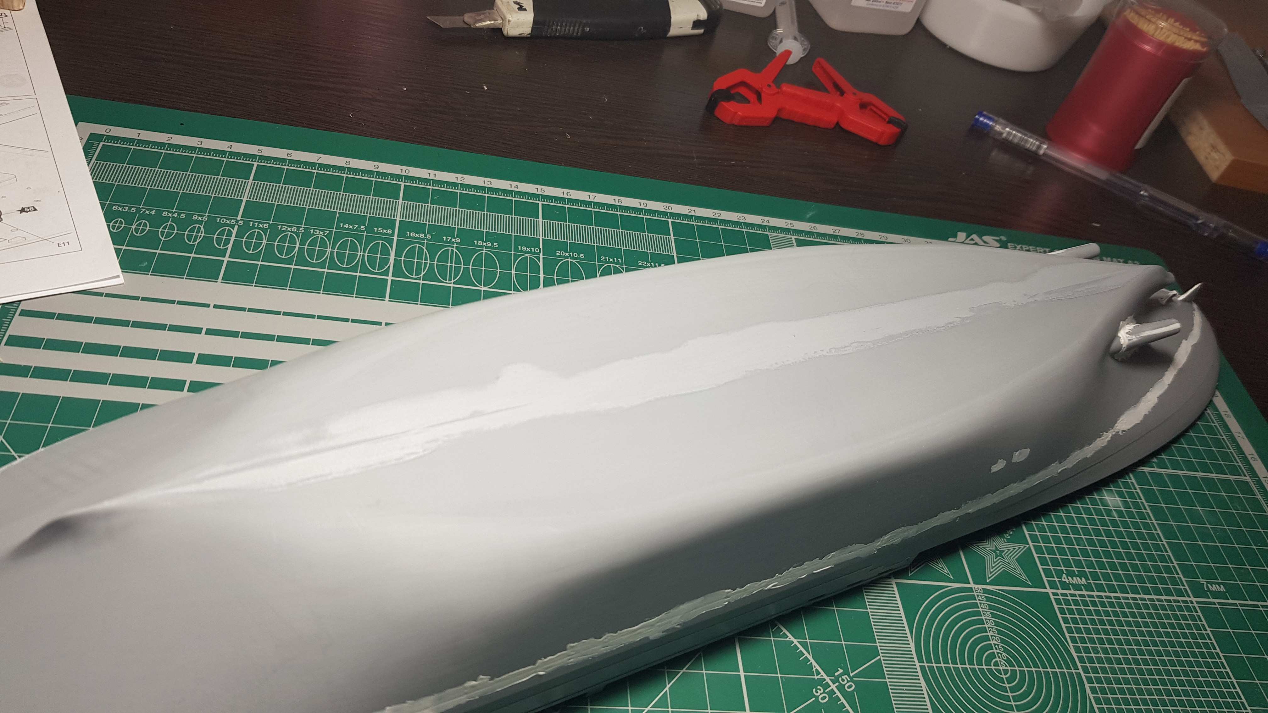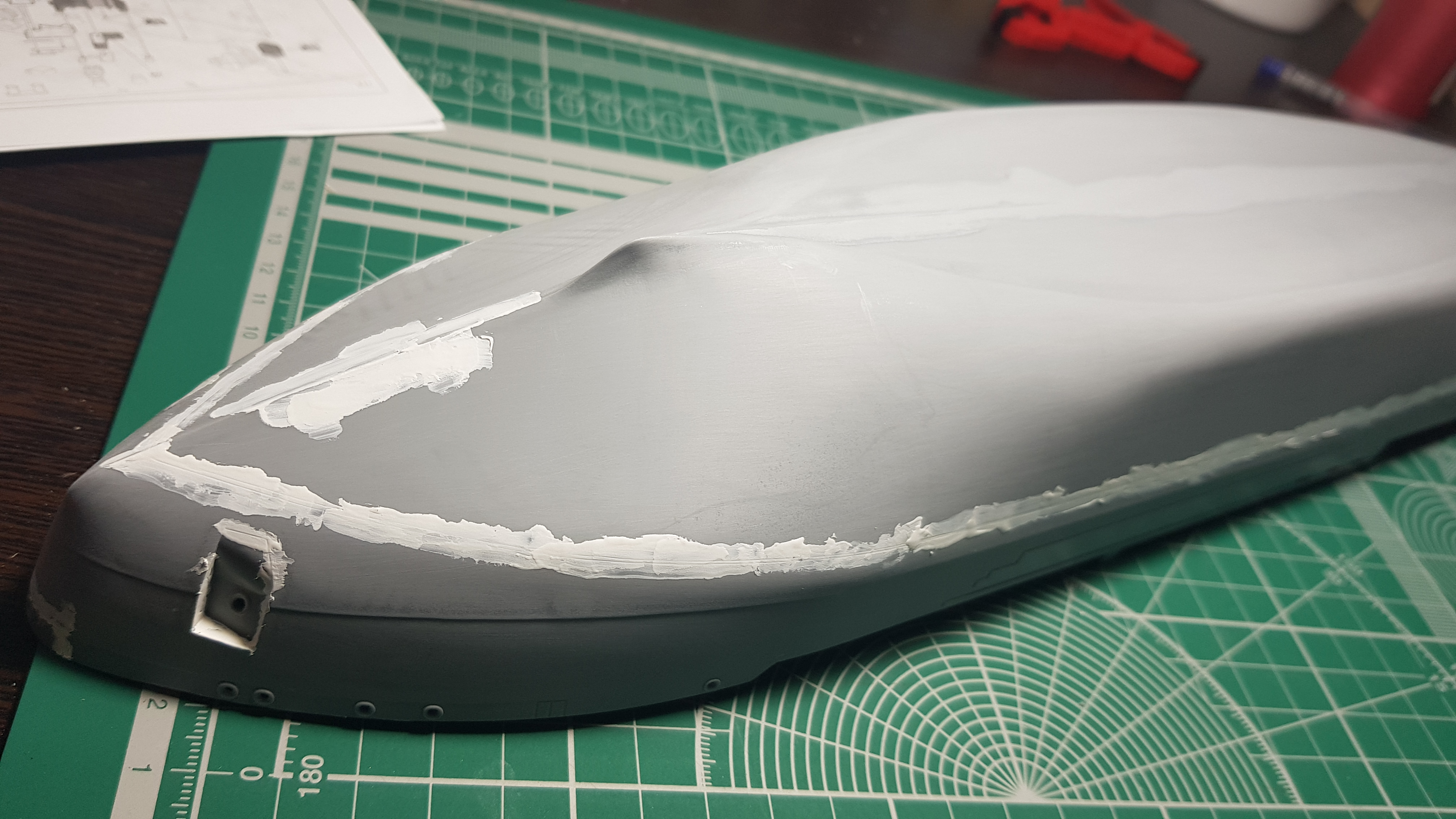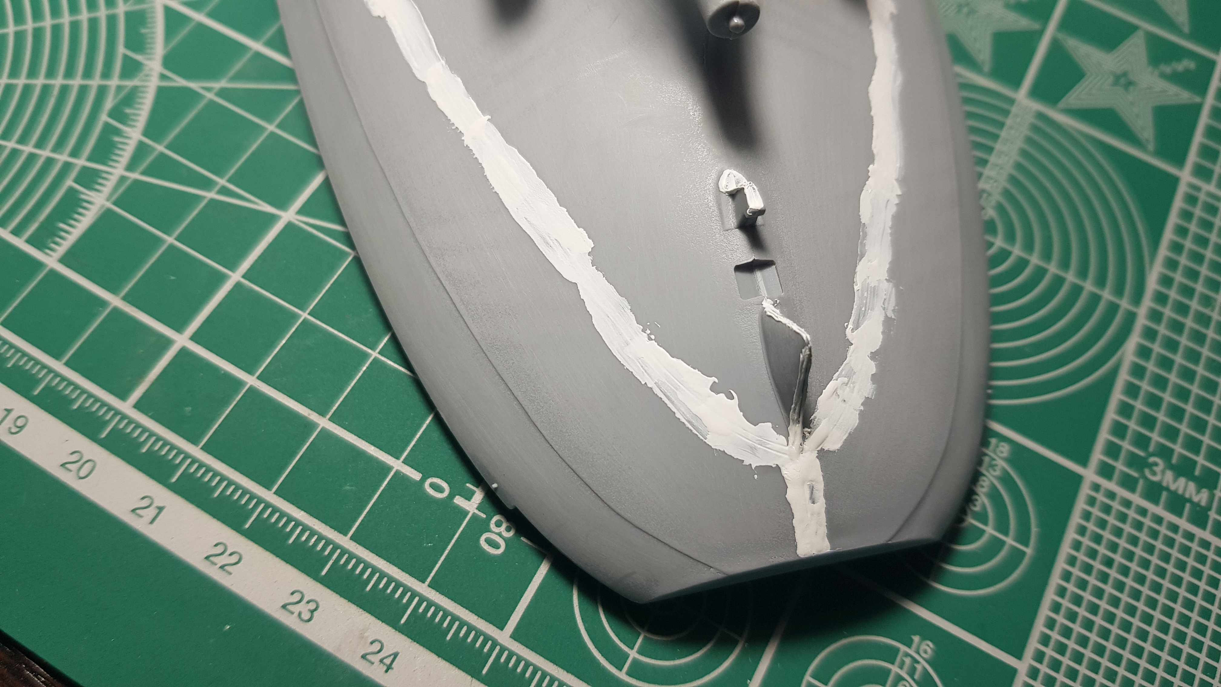Продолжаем. Зашлифовал корпус Р800. Шагрень почти стерта. Зашпаклевал все что осталось после шлифовки. Ватерлиния, это реально то, чего лучше бы небыло. Смонтировал дедвудные трубы и тоже шпаклевка. Возможно Михаил и стоило воспользоватьсч методом окунания)))