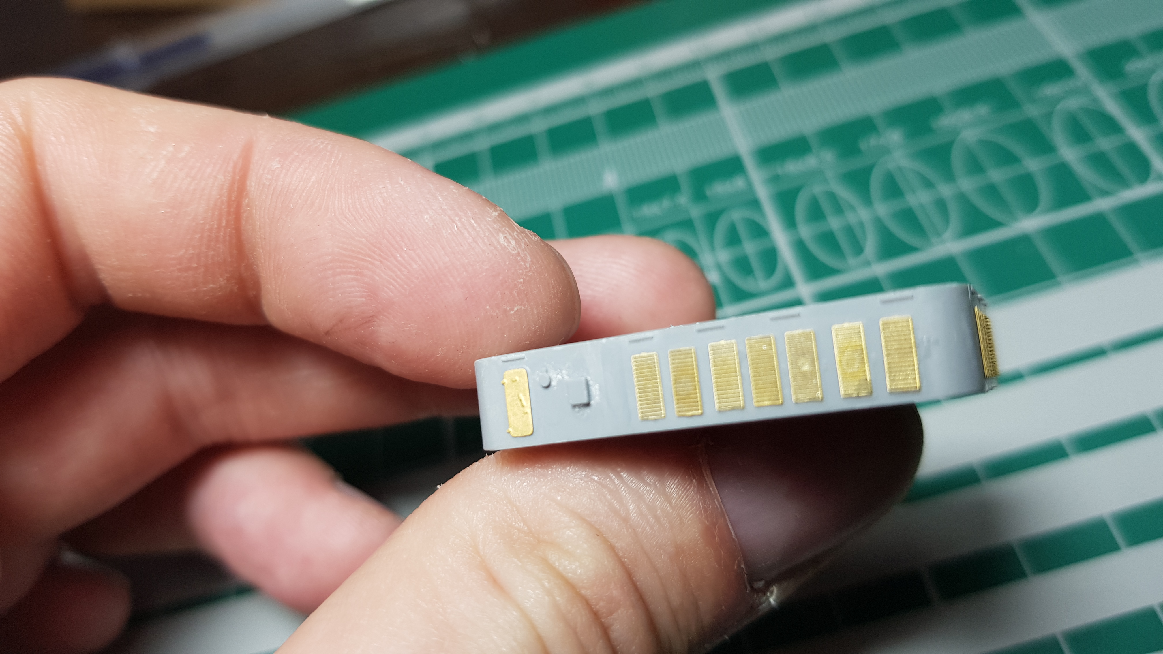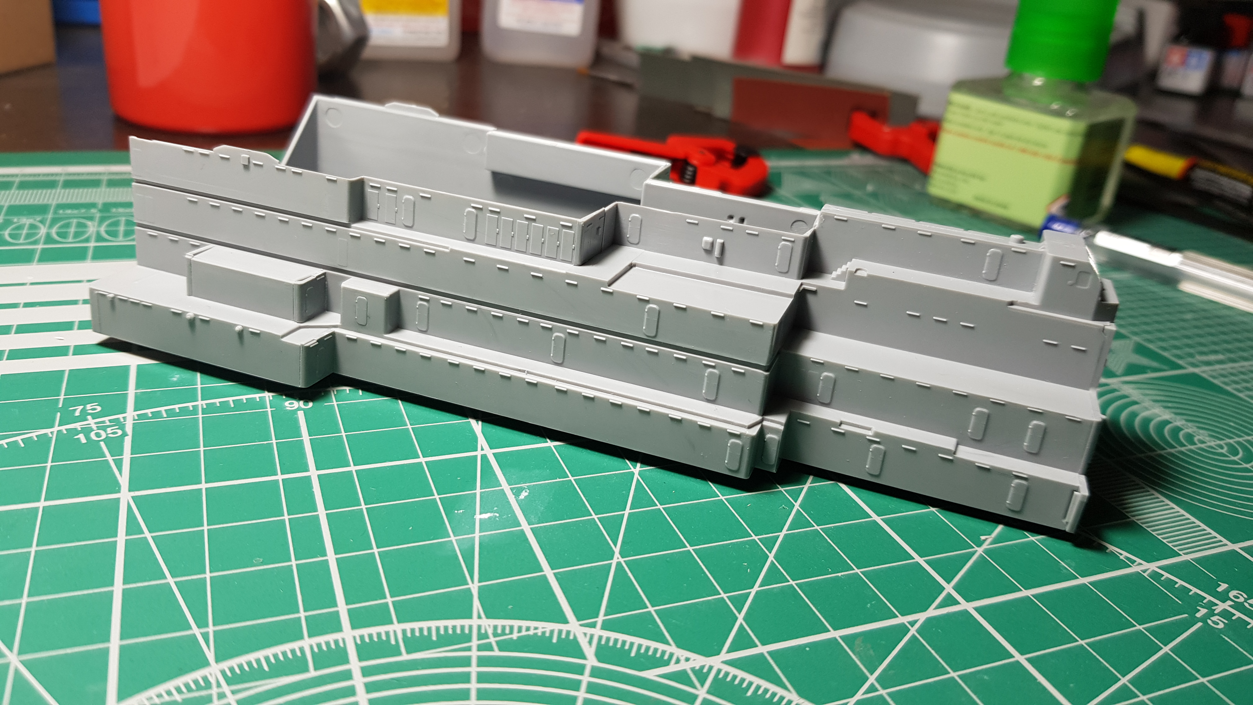 .) на верхней части надстройки срезал решетки и пару дверей, заменил травлением. Закрасил черным иллюминаторы. Думал везде, ан нет, пропустил два на центральной))
