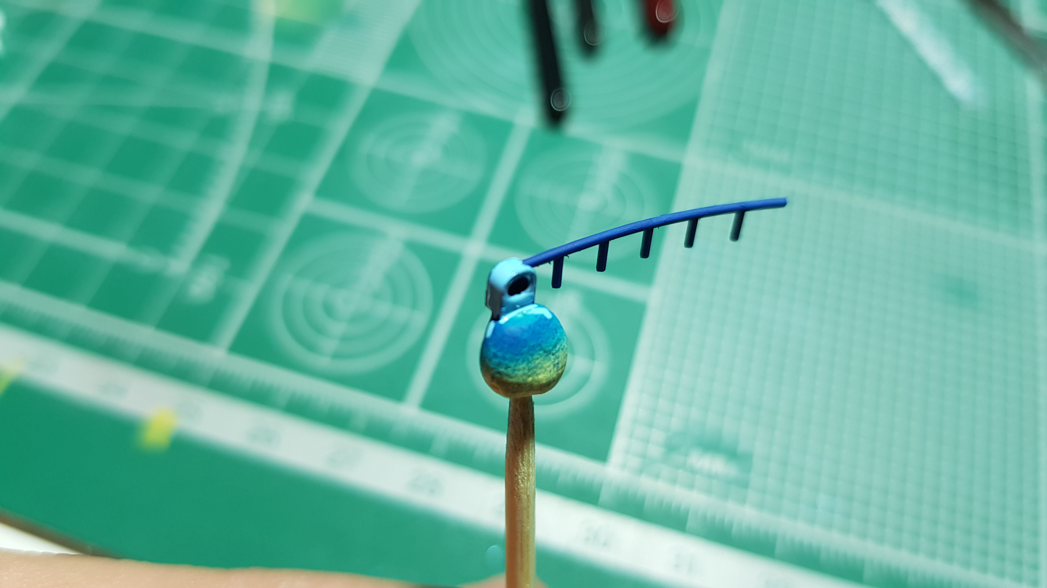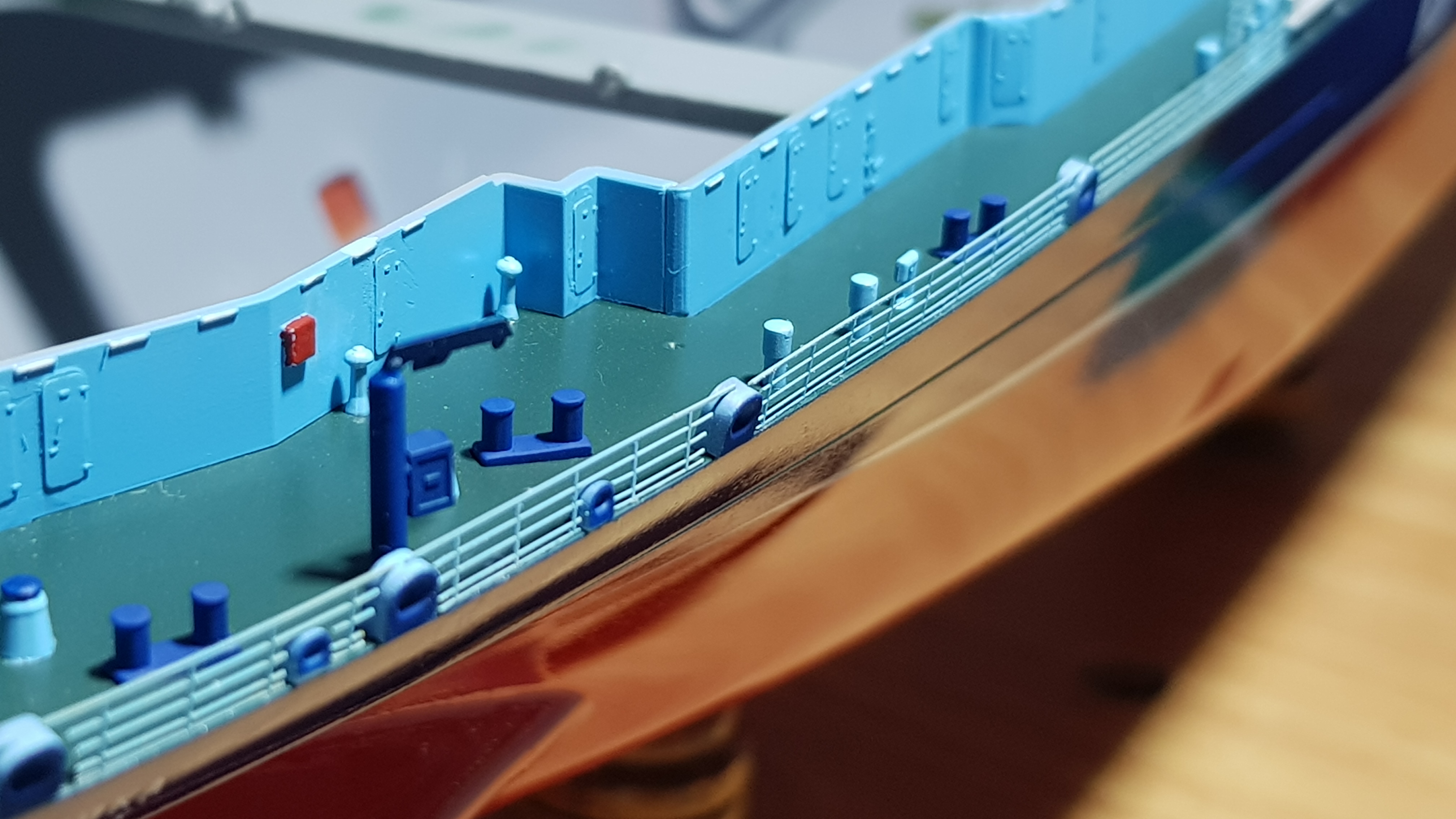 Отдельное спасибо Михаилу, за совет обмотать пинцент скотчем. Чтоб не царапал крашеное травление. Казалось бы банально же. Но я как то сразу не сообразил и царапал леера при установке)))