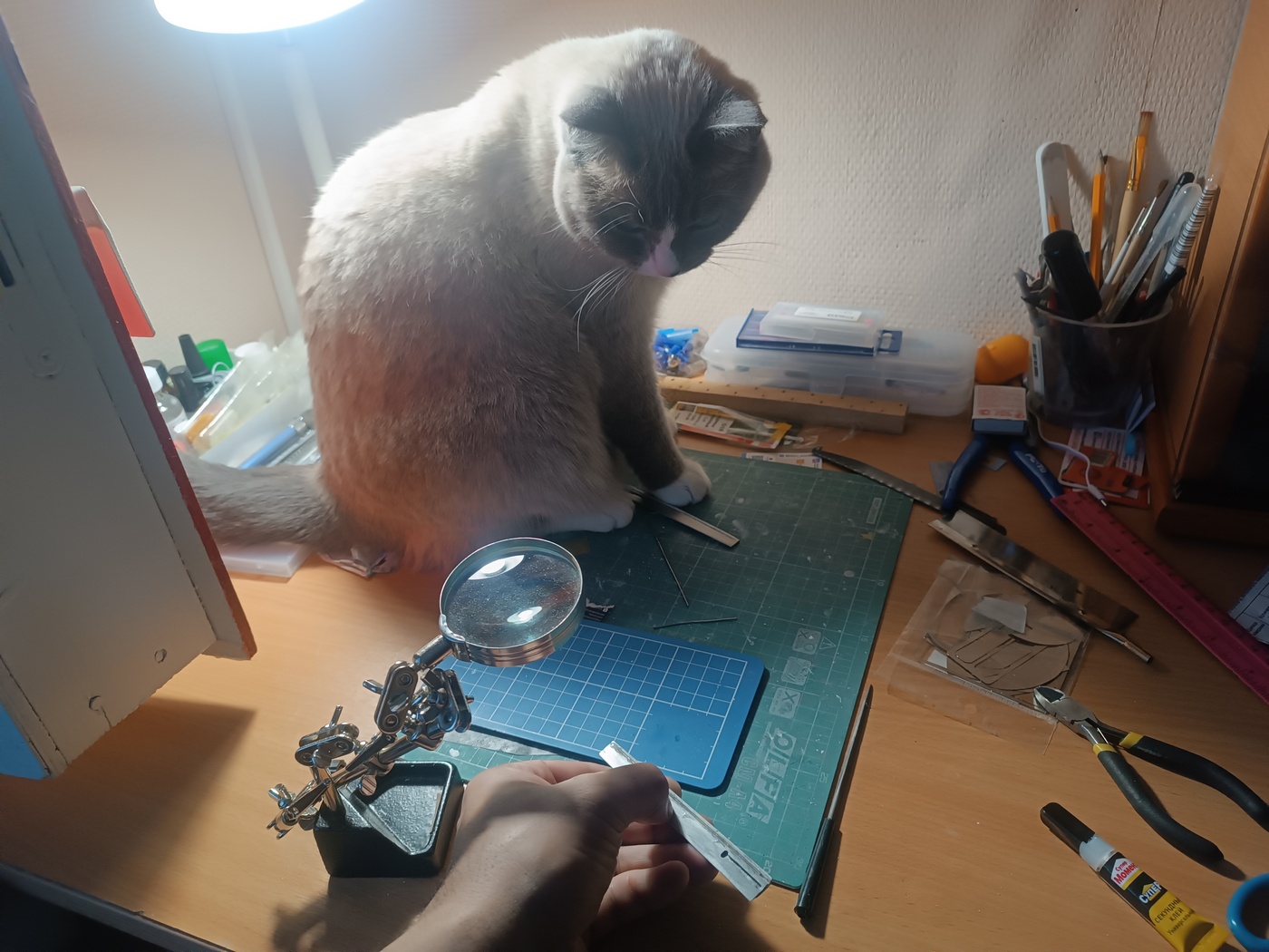 Вклеил стальную скрепку, в крыло 900-го Гермеса, заливал все суперклеем...помогала моя сноу-шу Маня