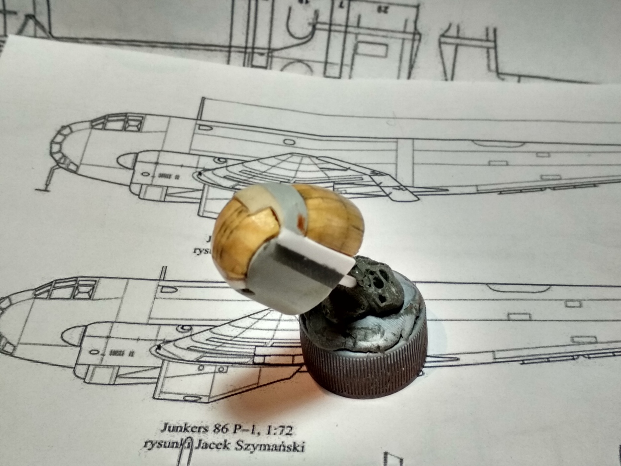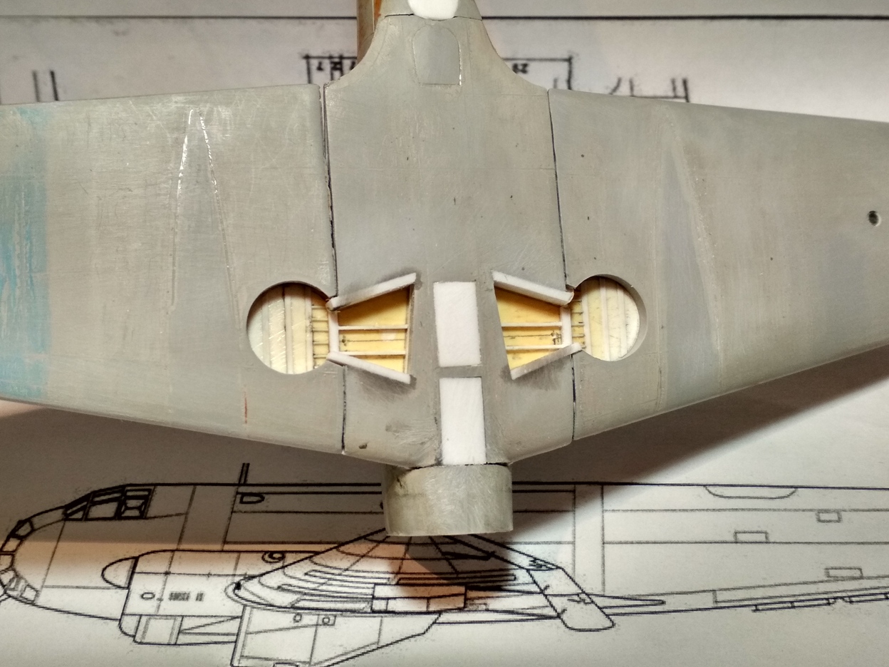 Отрезал носовую часть, зашил пластиком вырезы под турели, и немного доработал ниши шасси.