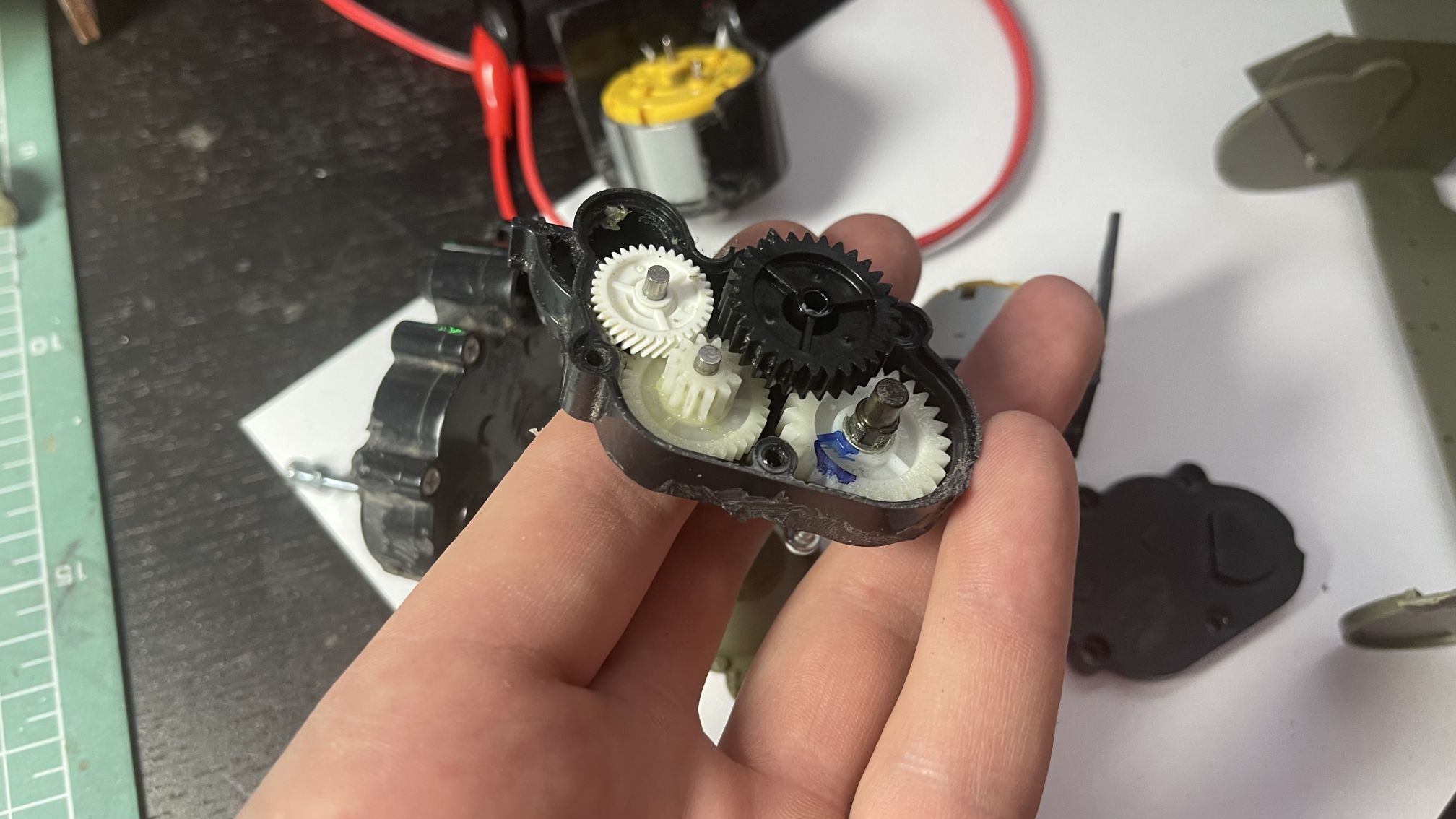 Ну что, даешь полный трешак)) Короче препарировал старый робот-пылесос, болтавшийся в подвале, получив прикольные мотор-редукторы. Получились компактнее чем есть в продаже, хоть шестерни и пластиковые. Но мощные, вал редуктора руками не остановить. Попробую вживить, если не получится закажу правильные.