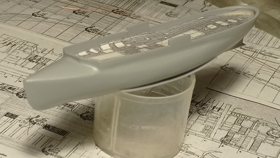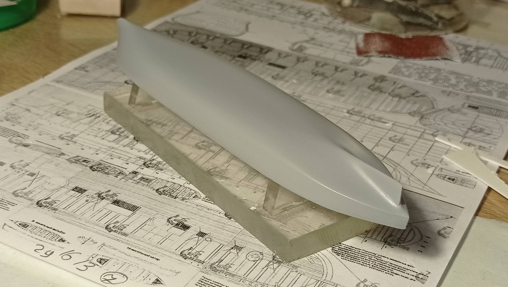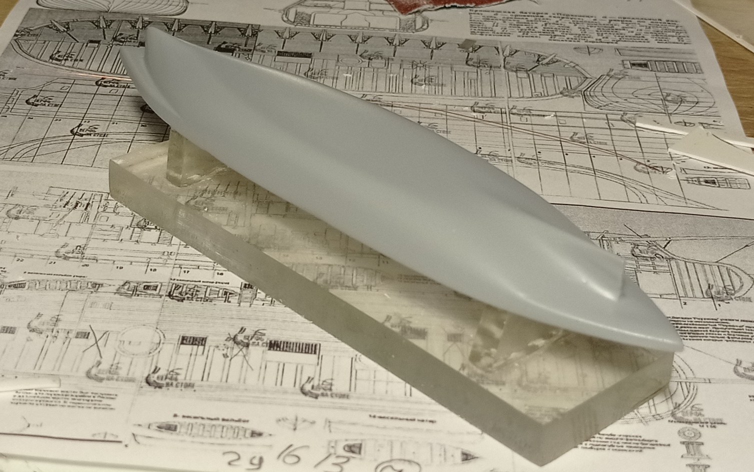 Немного поработал со шлюпками, доделал боевую рубку, выточил подставки, и покрасил корпус,результат окраски выложу завтра,сейчас сохнет.