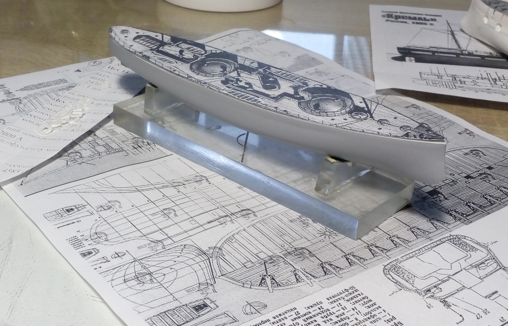 Решил начать сказку о постройке модели плав батарея "Первенец" в 1/350. Раньше уже была такая сказка, ее строил коллега Дэ Лорро но в 1/500. Ну и я прочитав его рассказ решил повторить. Чертежные материалы те же , что и у него. С 2013г вроде ничего нового не появилось. Хотя нет еще есть от бумажного моделирования выпуск. Материалы по изготовлению корпуса для меня все те-же, ПВХ.инструменты использованные для изготовления корпуса самые простые, канцелярский нож и наждачка. Так-же для доводки под окраску была использована нитро грунтовка из балончика и полиэфирная шпаклевка. Корпус довольно сложной и необычной формы, склеивал его цианопановым клеем. Коечные сетки сделаны из аллюминиевых жалюзей.