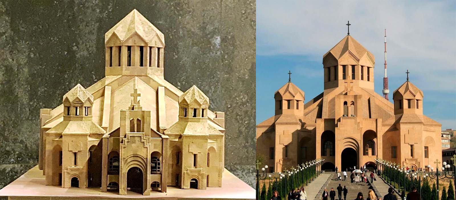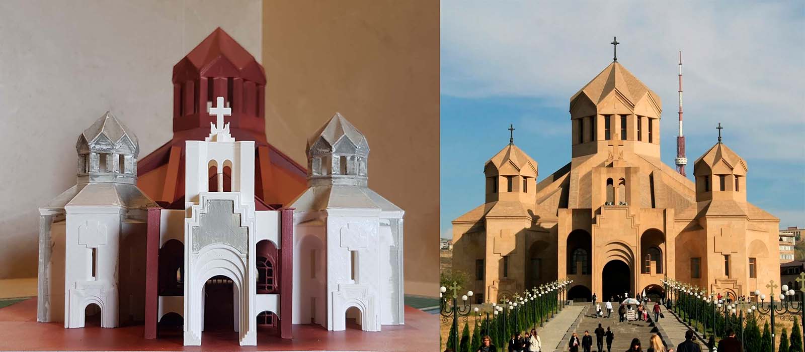 Всем привет. По различным причинам пришлось мне на долго отлучить себя от любимого хобби, но тут подвалила небольшая работа - построить Собор Святого Григория Просветителя в Ереване. Попросили мои строители Армяне. Хотят иметь частичку дома здесь. Ну что ж, мне не жалко, да и архитектуру очень давно не ваял. Информации по храму для строительства макета почти нет, но есть его габаритная высота и вронтальные фотки со всех сторон. Яндекс стрит вью тоже здорово помог. Вот фото оригинала