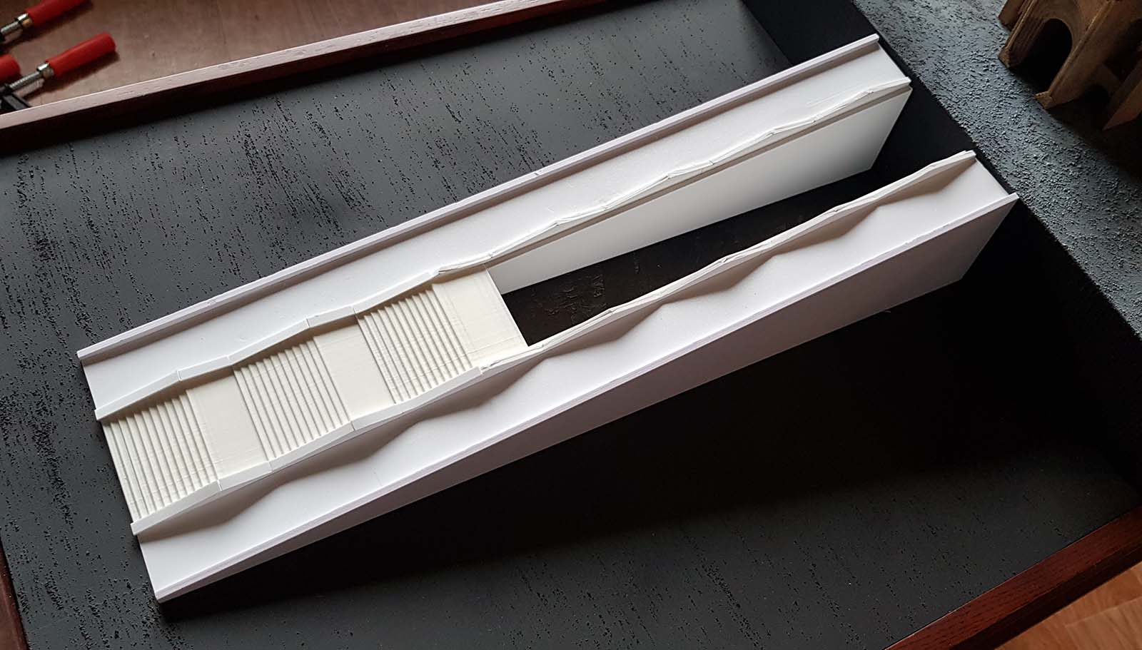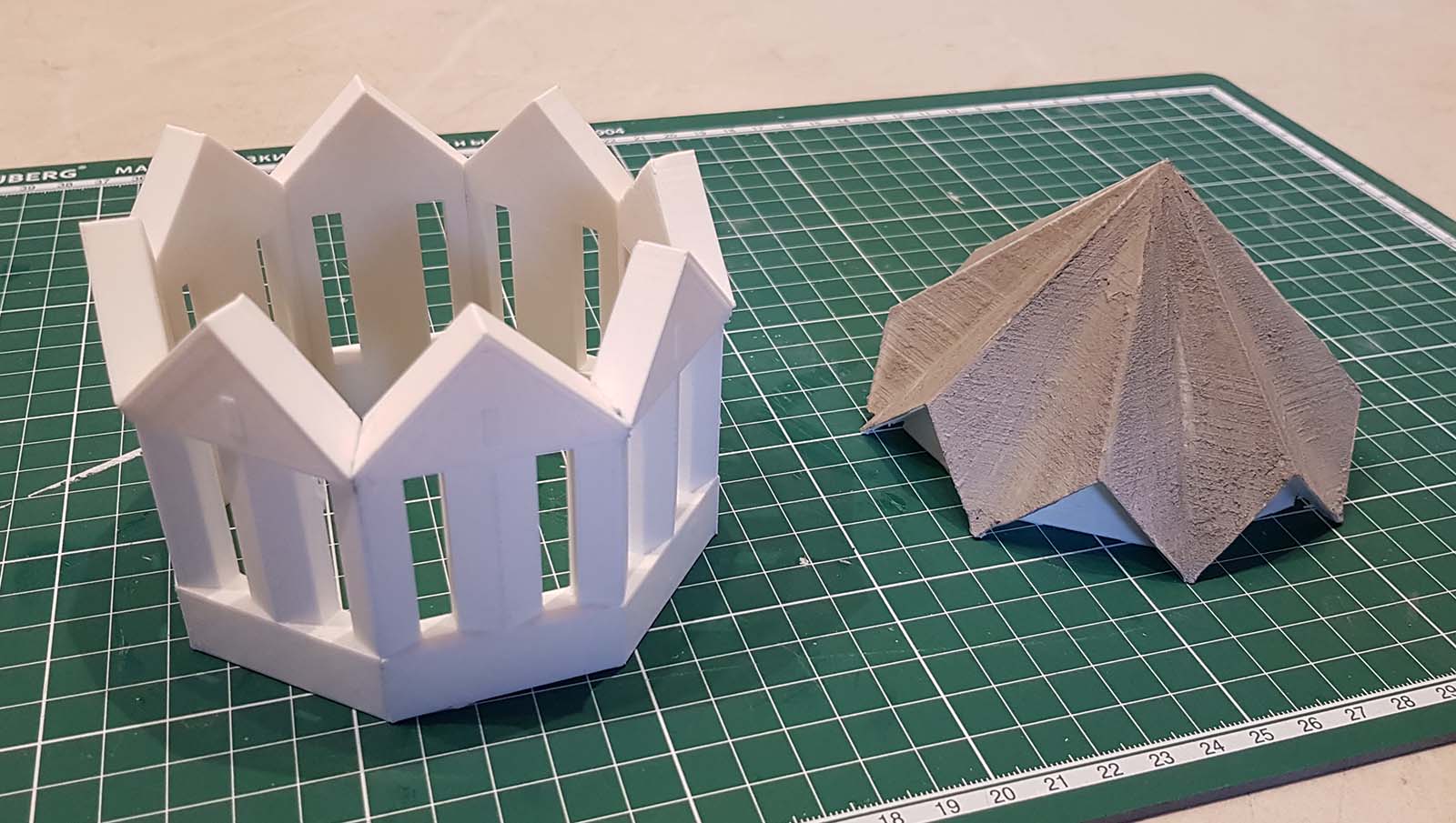 Ну и начинаем пилить. Сначала хотел сделать макет из бетона. Напечатал опалубки (убил почти 1 кг пластика), промазал их вазелином, залил в них цемент М500 и через 10 дней попробовал вытащить... Хрен вам! то что вышло - оказалось деформированным, частично не пролитым, короче жуть жуткая. Половину деталей вообще не сумел разопалубить. Так расстроился, что даже фотки не сделал. Просто в кучку сгреб и в помойку.