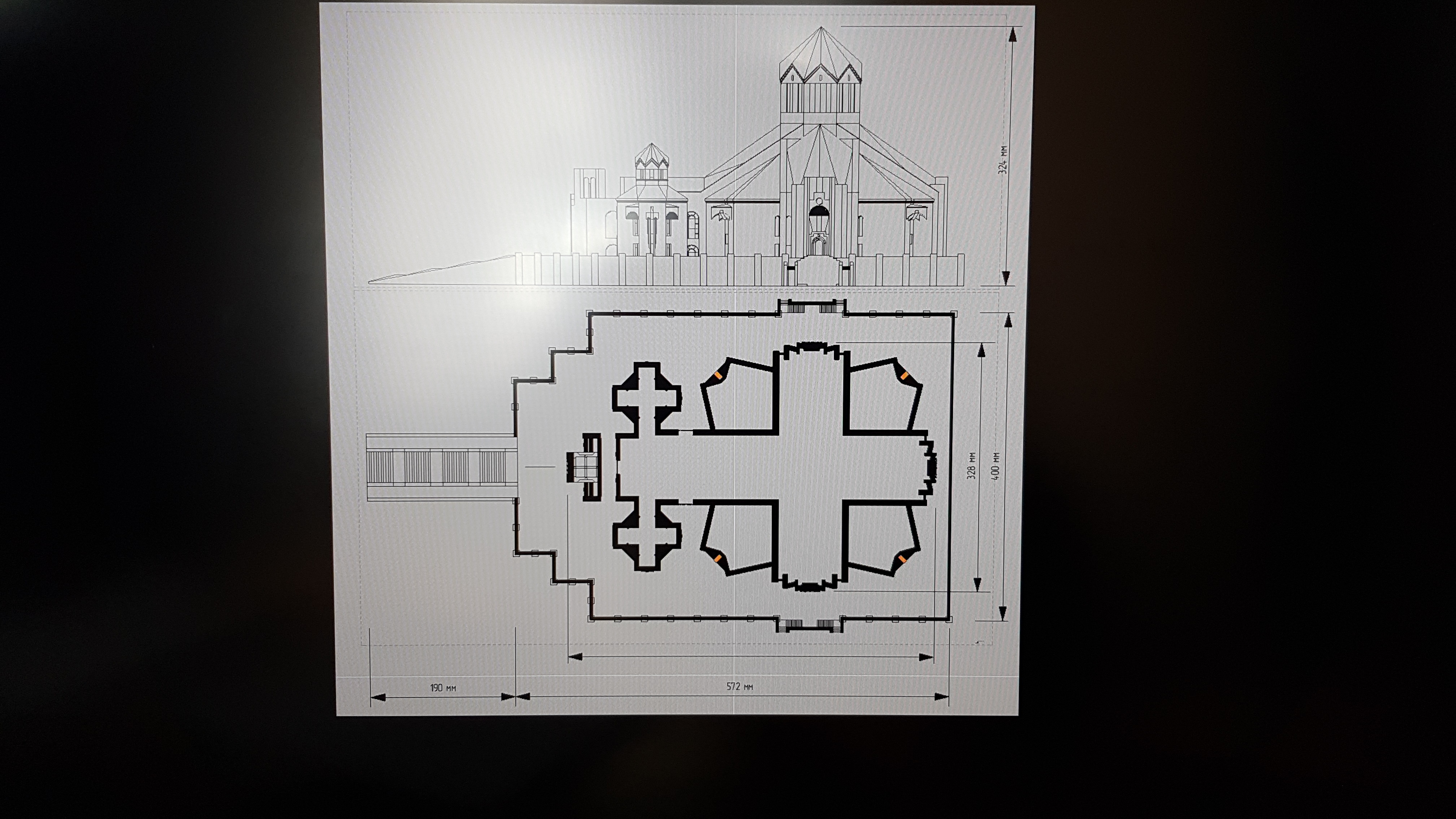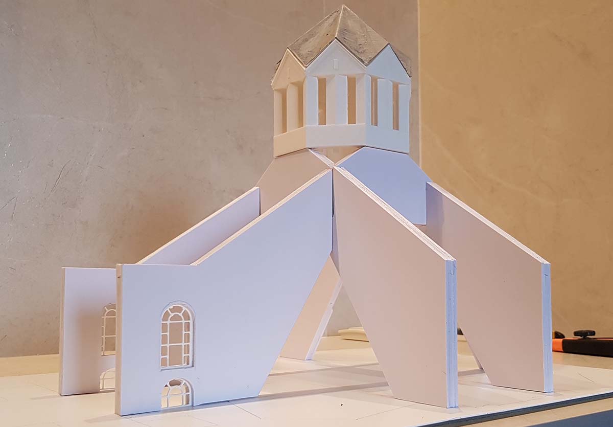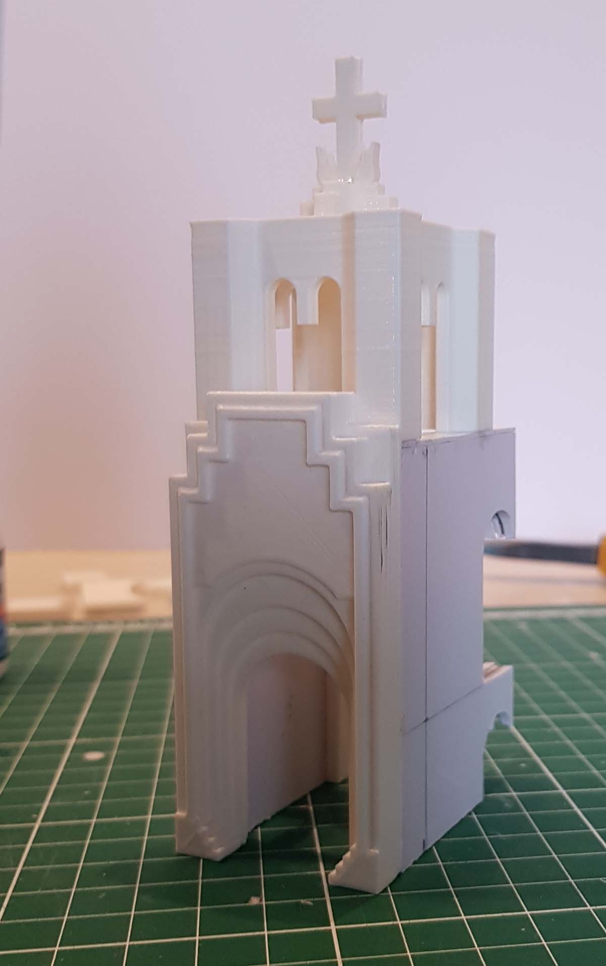 Ну и сама колокольня. Сложные детали печатаются, простые делаются из пластика руками