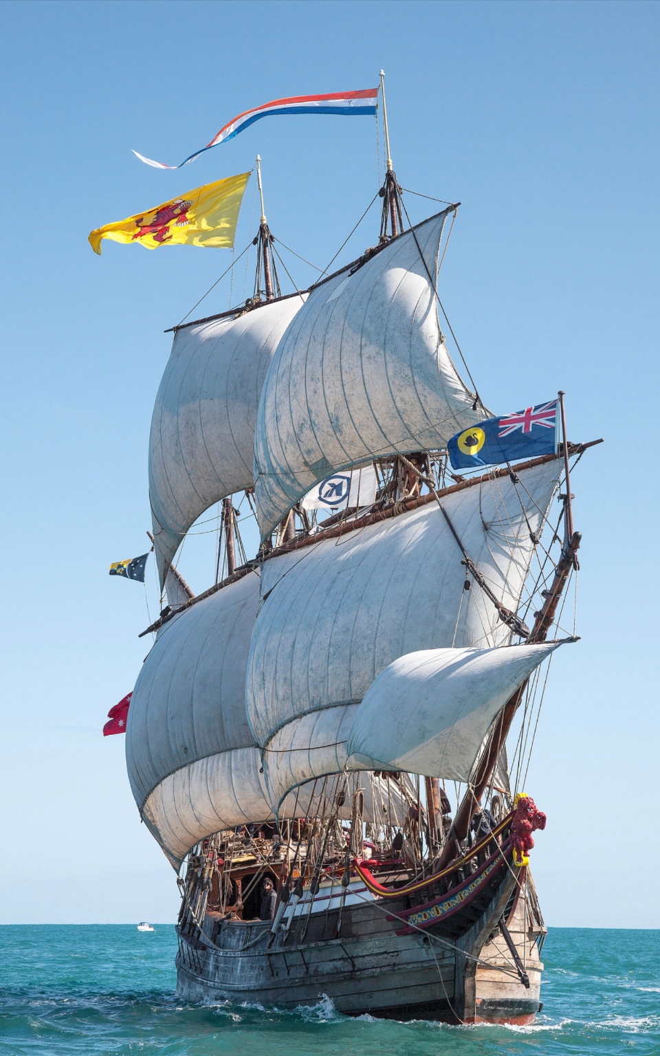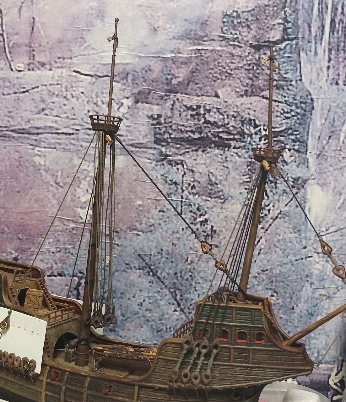 Фок мачта в стародавние времена,часто имела значительный наклон в нос, но и все её компоненты,стеньги,брам стеньги,соотв.имели такой же наклон как и мачта... а на модели, такое впечатление, что ф- мачта с наклоном, но стеньга почему то решилампринять более вертикальное положение?