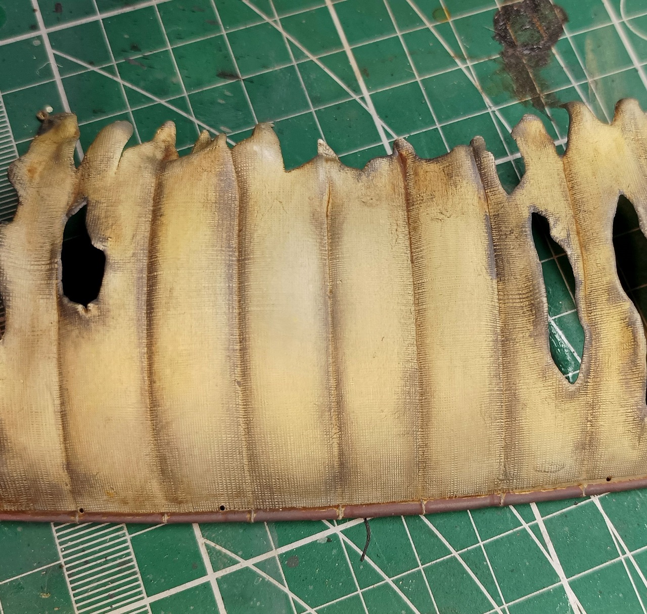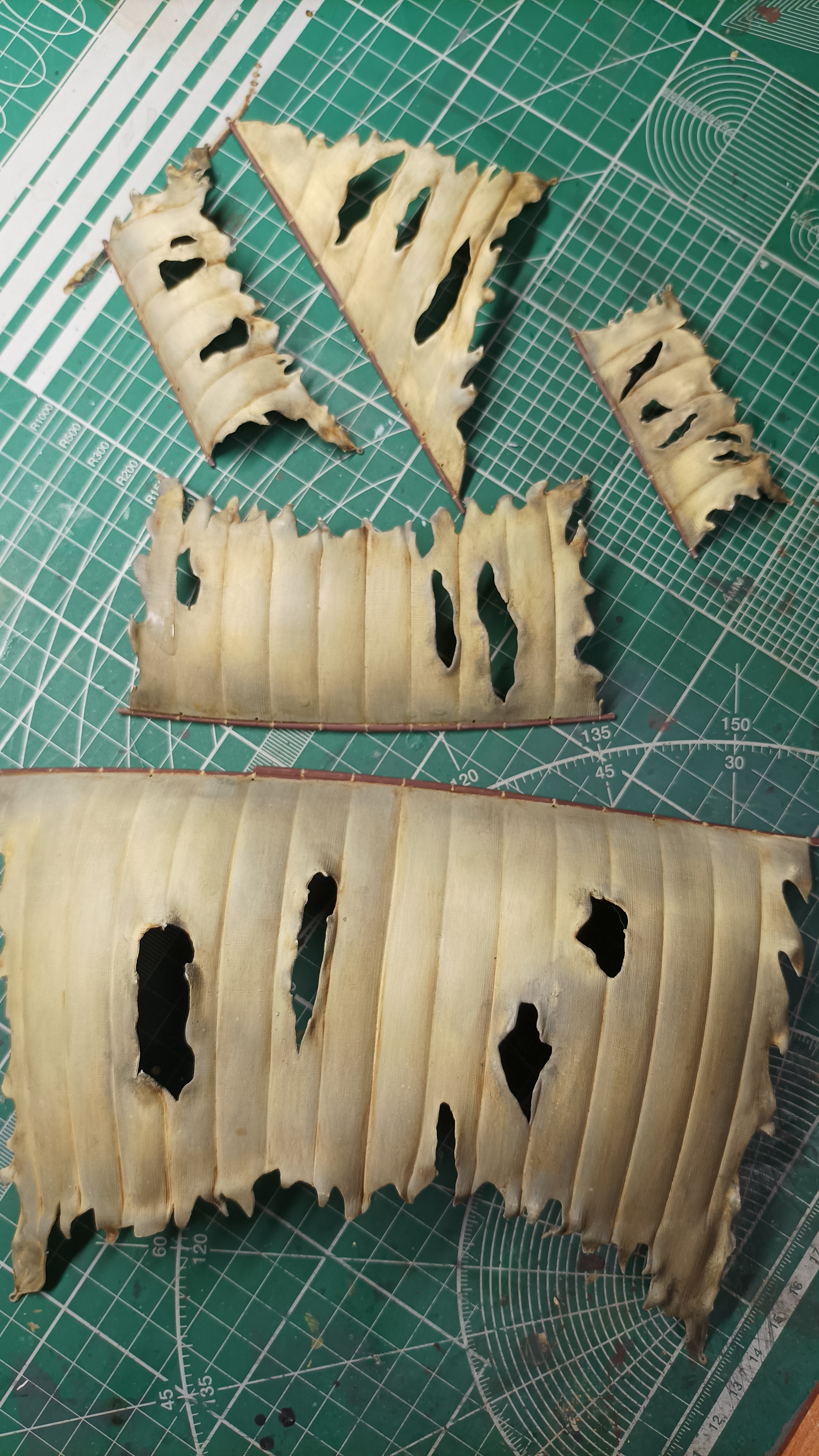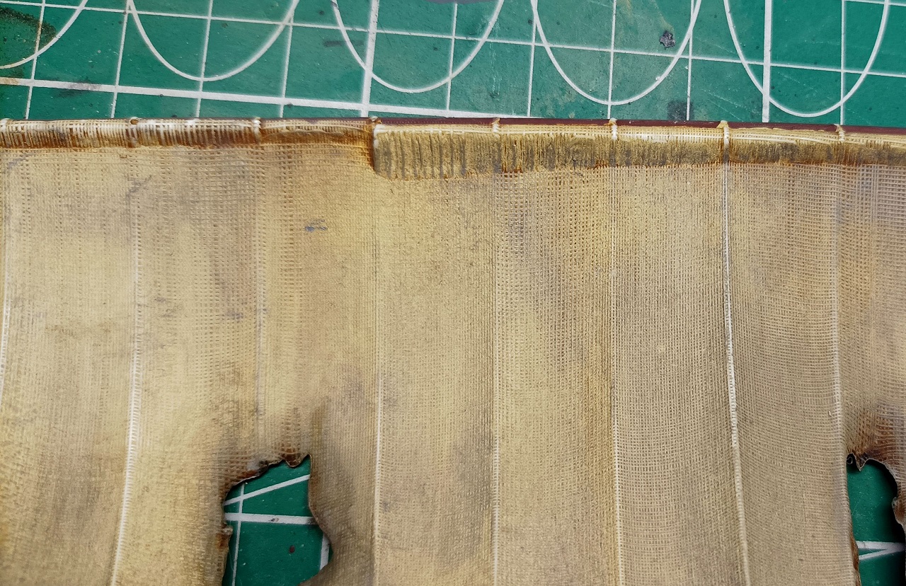 А прикольно получается! Наверное стоит еще рваные края затемнить - они на ветру сильно трепыхаются и пачкаются больше, чем целые куски ткани (сужу по всяческим флагам, за которыми не очень следят)