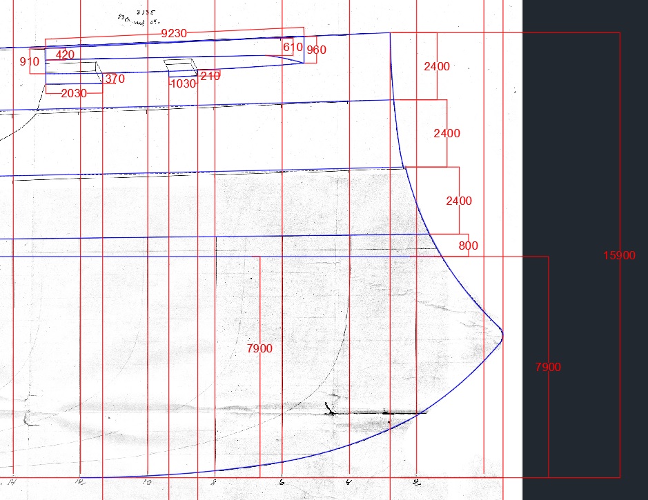 Самое хреновое, думаю, если седловатость в корме все же приличная на корабле была, а чертеж к корме просто вниз повело на сканере под конец...(