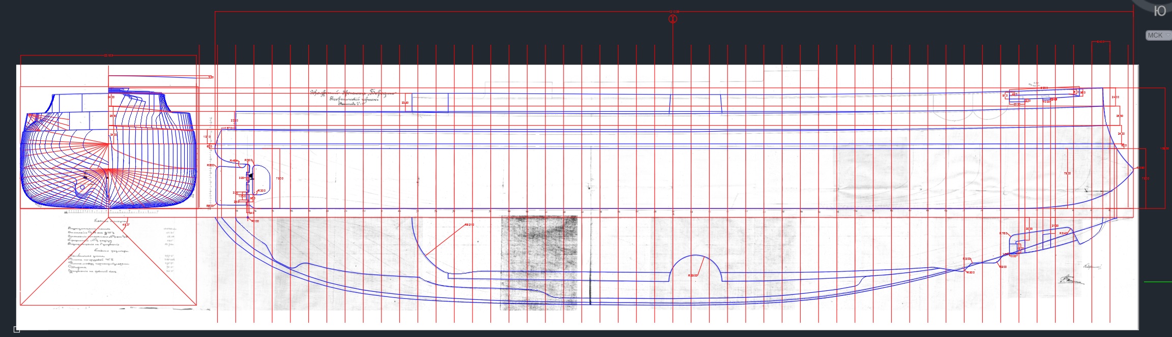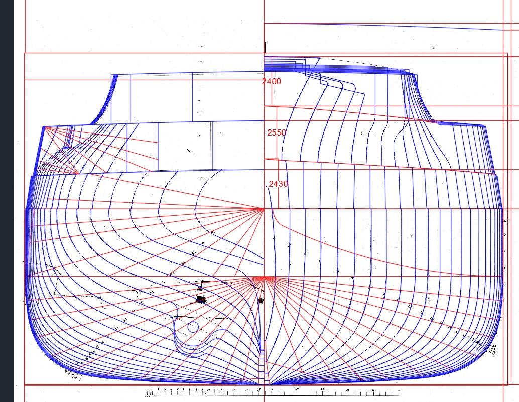 Теперь рутина осталась - раскидать шпангоуты по чертежу