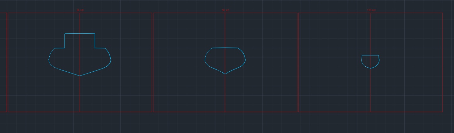 Отрисовал прямые участки шпангоутов.