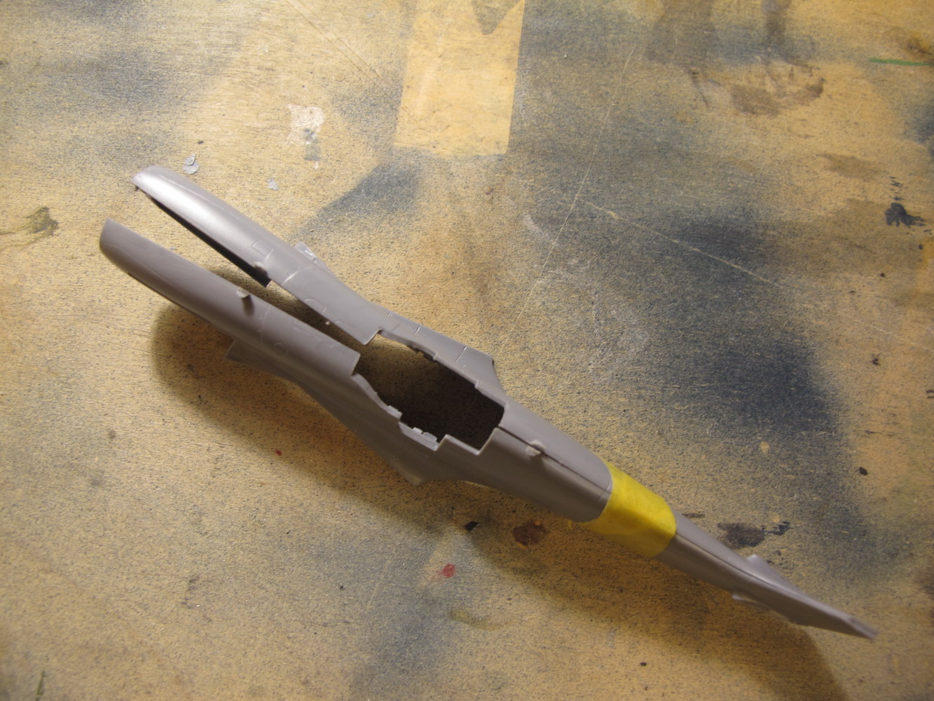Все открытые проёмы (кокпит, отверстие под ось винта, ниша хвостовой стойки шасси) пока заклеены скотчем во избежание попадания пыли внутрь фюзеляжа.