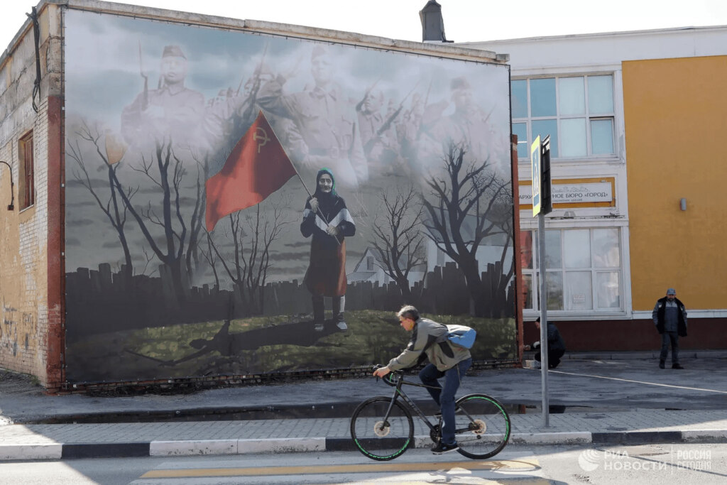 Флаг Победы растоптан у ног.