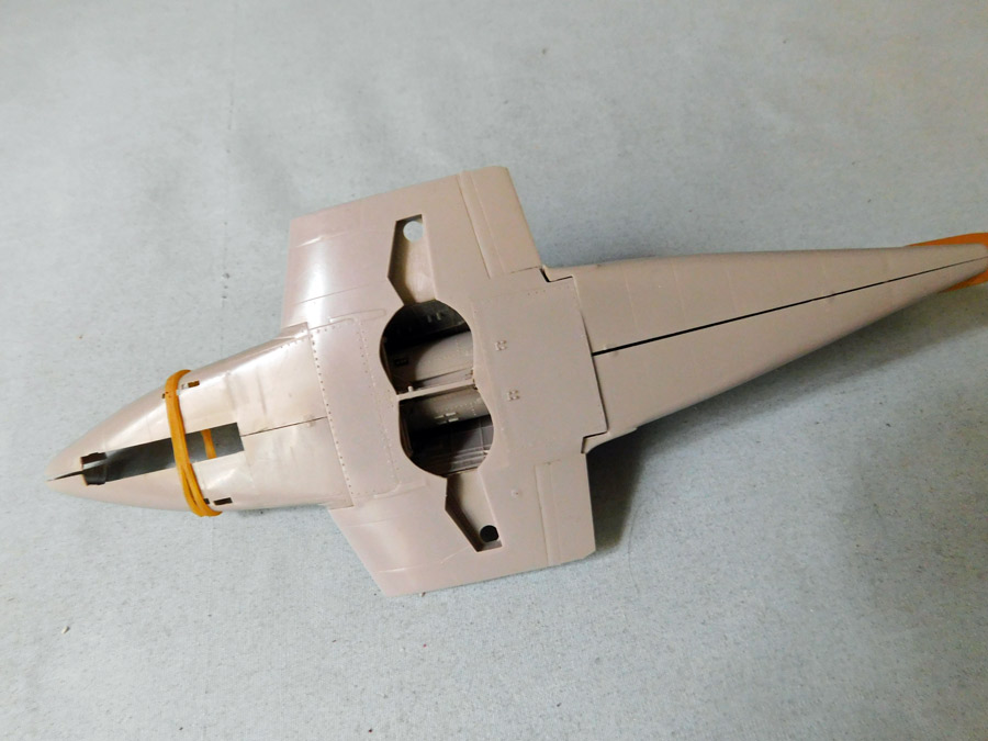 Подогнал и приклеил крылья, так как крыло "ушло" вперед образовалась сквозная щель н фюзеляже в районе закрылков...