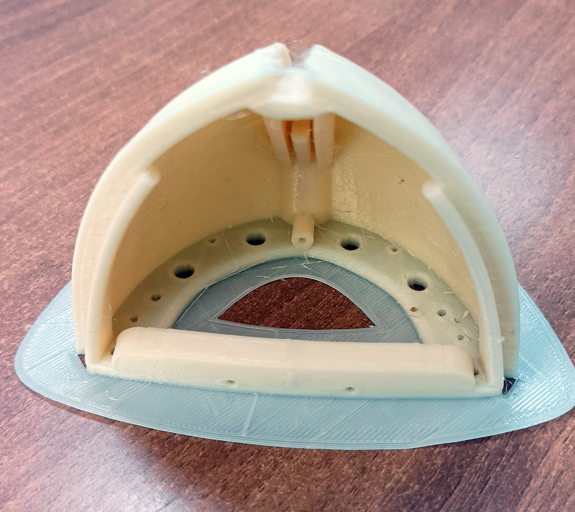 - Начали печатать каракку от Парус 3Д. Из PETG пластика, как рекомендуют авторы модели. Я ожидал худшего. Сначала напечатали шлюпку, для пробы. Потом подставку. Сегодня - нос. На ночь оставили печатать среднюю часть корпуса. Медленный процесс.