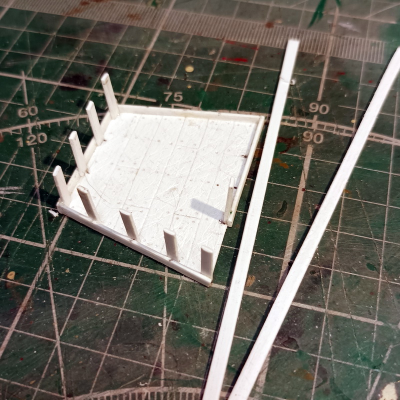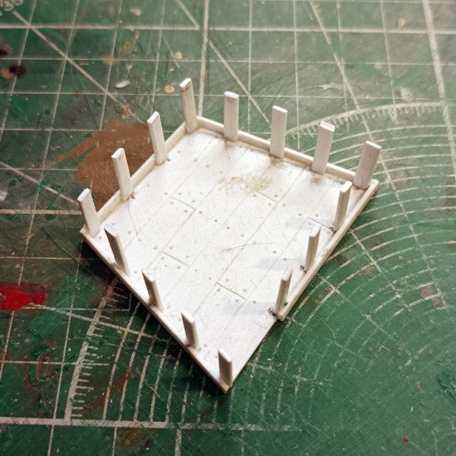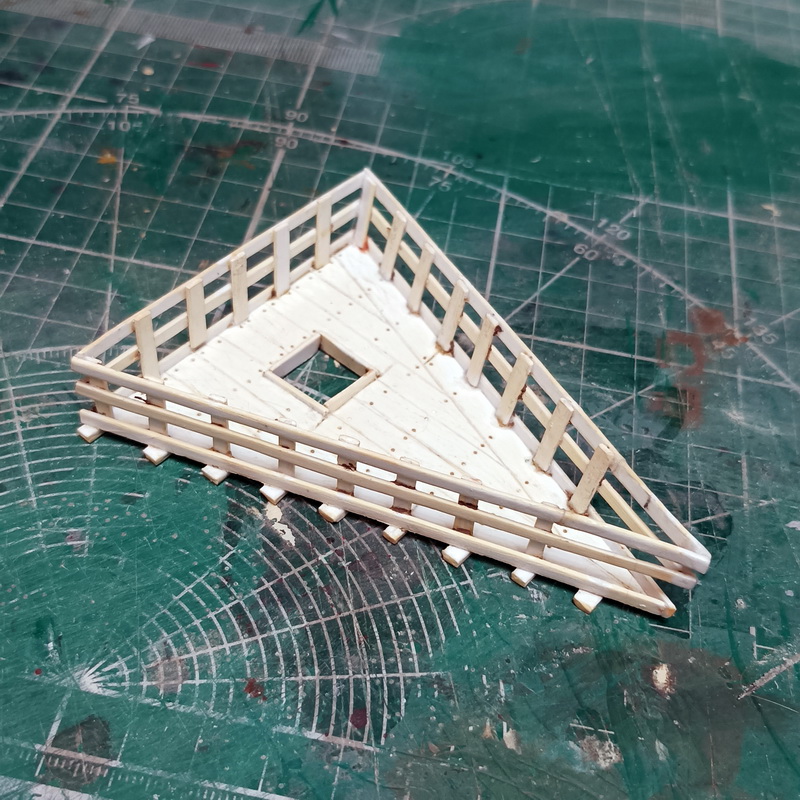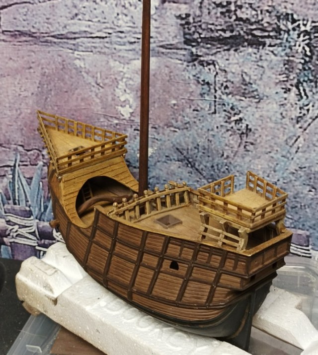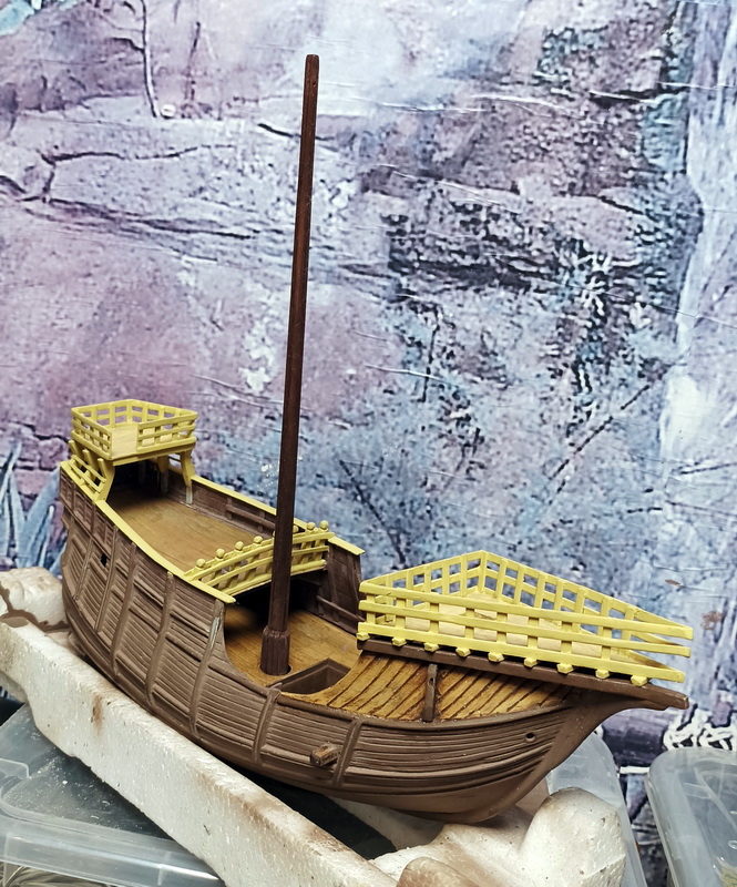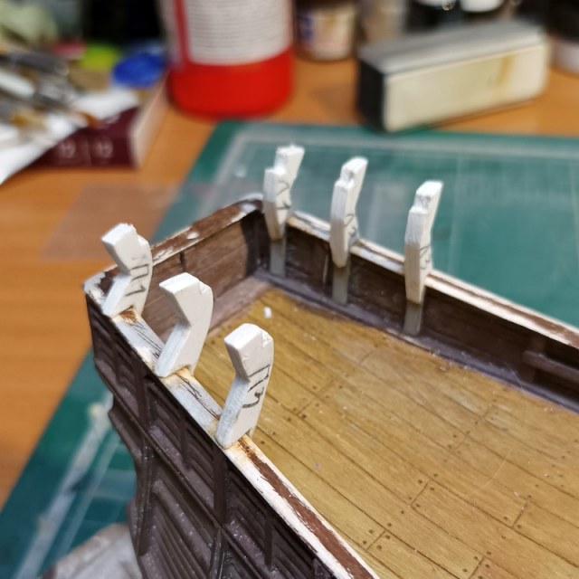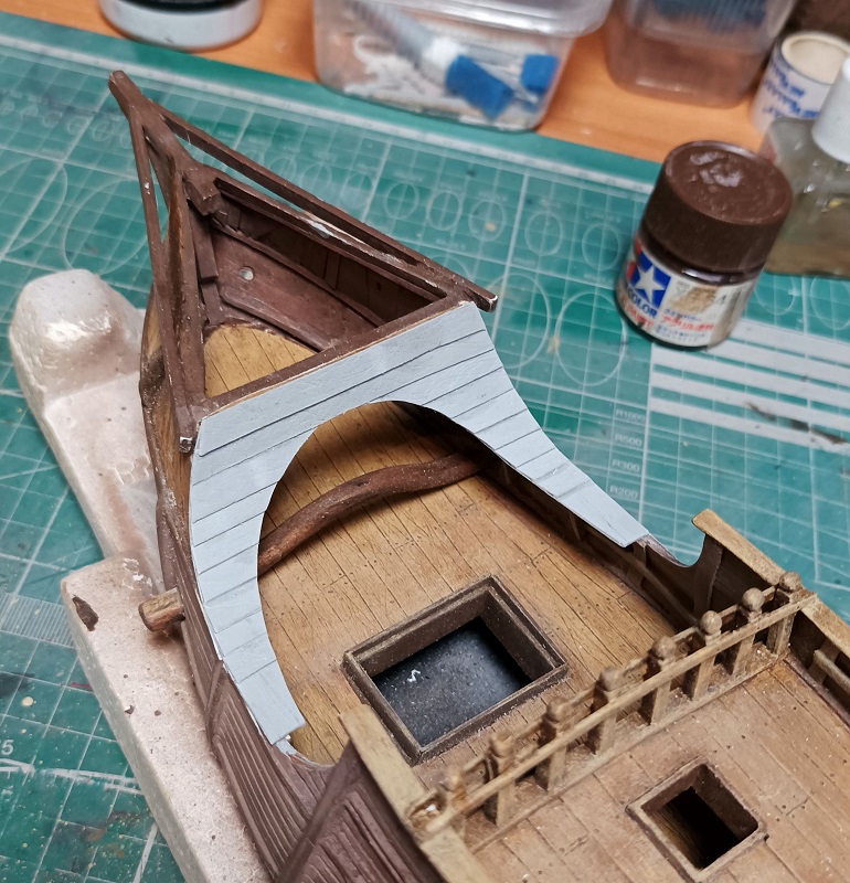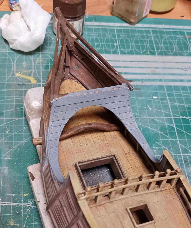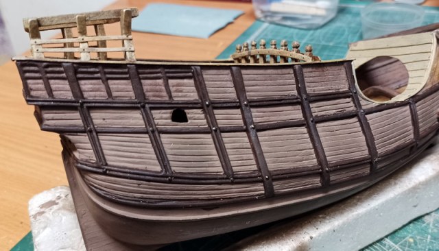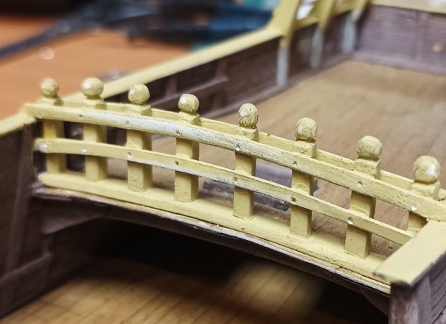 Ограждения форкастля, кватердека и архекастля покрыл светлой акриловой базой.