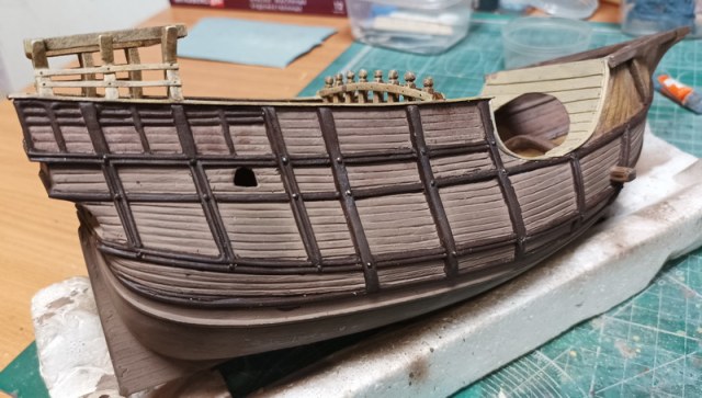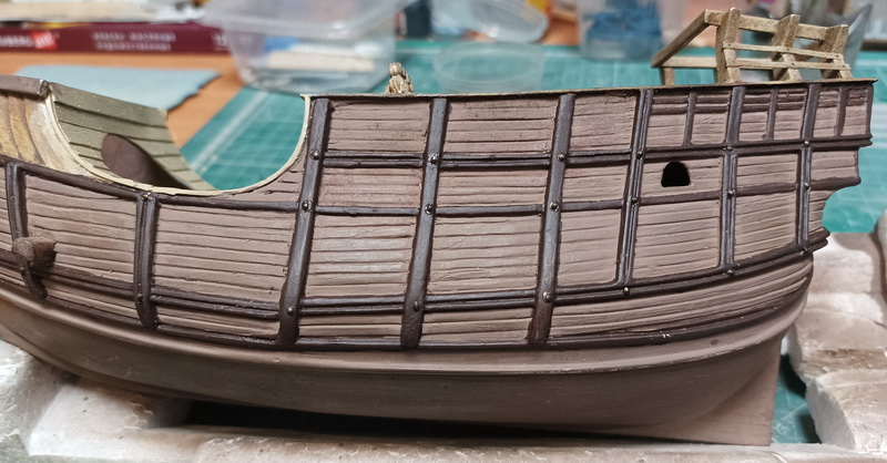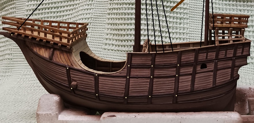 Сегодня посвятил вечер "болтикам". Их историческая достоверность, конечно, сомнительна. Но, на мой взгляд, они придали весомость корпусу, что соответствует духу каракки, и, заодно, дают оживляют картинку.