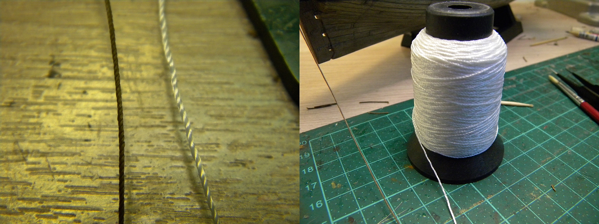 Я отвечал не на этот вопрос. Была попытка помочь автору, определиться вообще какими нитками делать такелаж. В швейных магазинах можно подобрать более менее нормальные нити, но они имеют в нашем понятии троссовое плетение, что для небольших моделей вполне подойдёт.