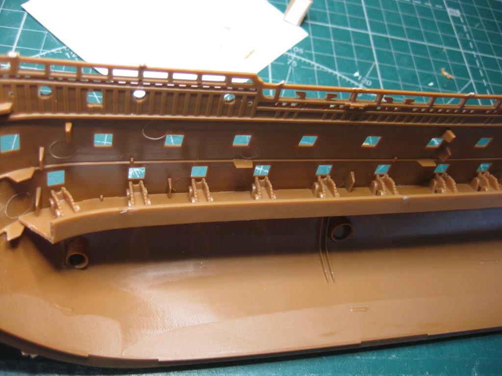 А вообще для водоплавающей версии лучше бы подошел Аирфикс. там в корпусе вообще отверстий нет. пушки-гвоздики в пазы вставляются
