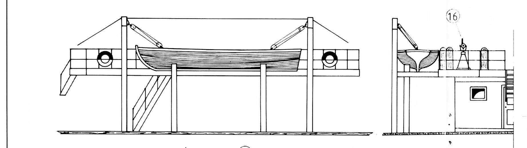 По фото видно что шлюпбалки находятся в дп шлюпки, совсем не так как на чертежах. Шлюпка стоит на каких то ажурных кильблоках.