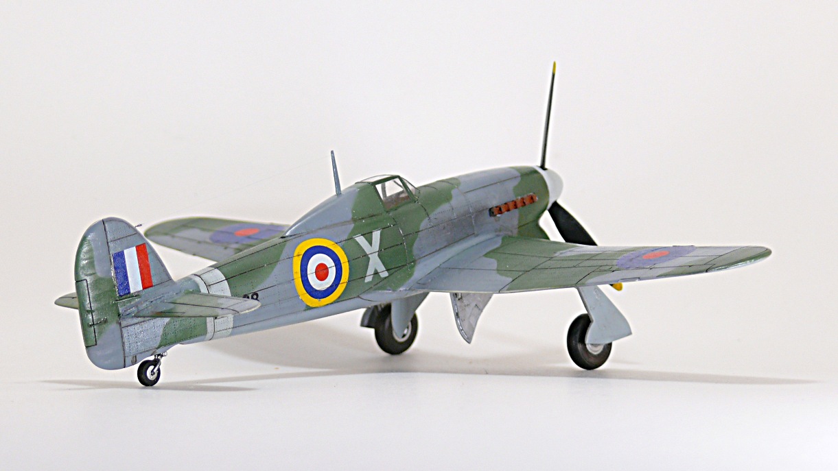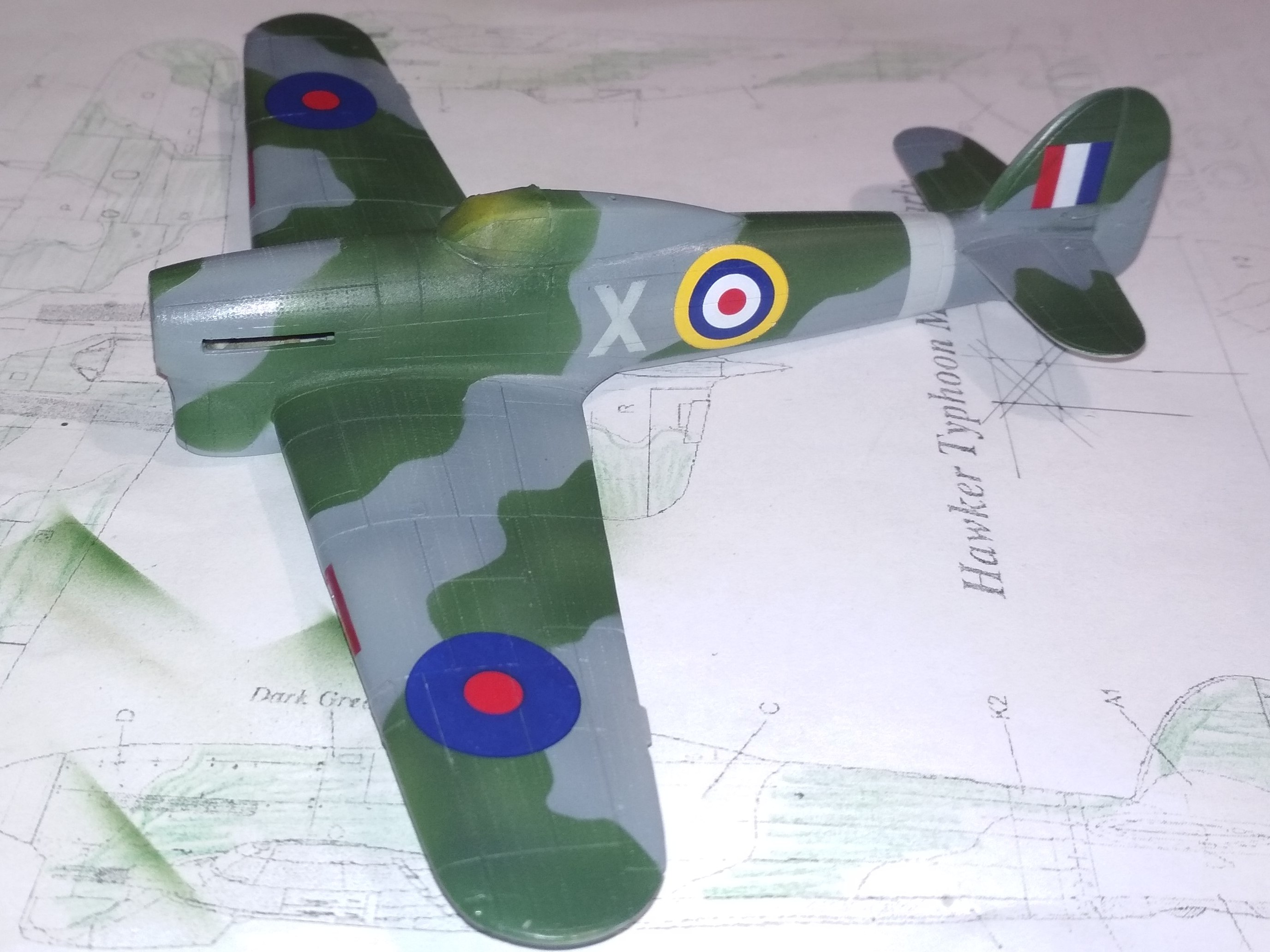 Декали из-за отсутствия подходящих взял от Хоби-Босовского MS-406, они подходят по размерам, но синий и красный немного не того оттенка, нижние кокарды от Ревеловского Хоукер Фьюри, который я переделывал в Иранца, декаль к стати не очень при приваривании стала сворачиваться, пришлось кодклеивать на ПВА и подкрашивать. Буква Х надувал по самодельному трафарету.