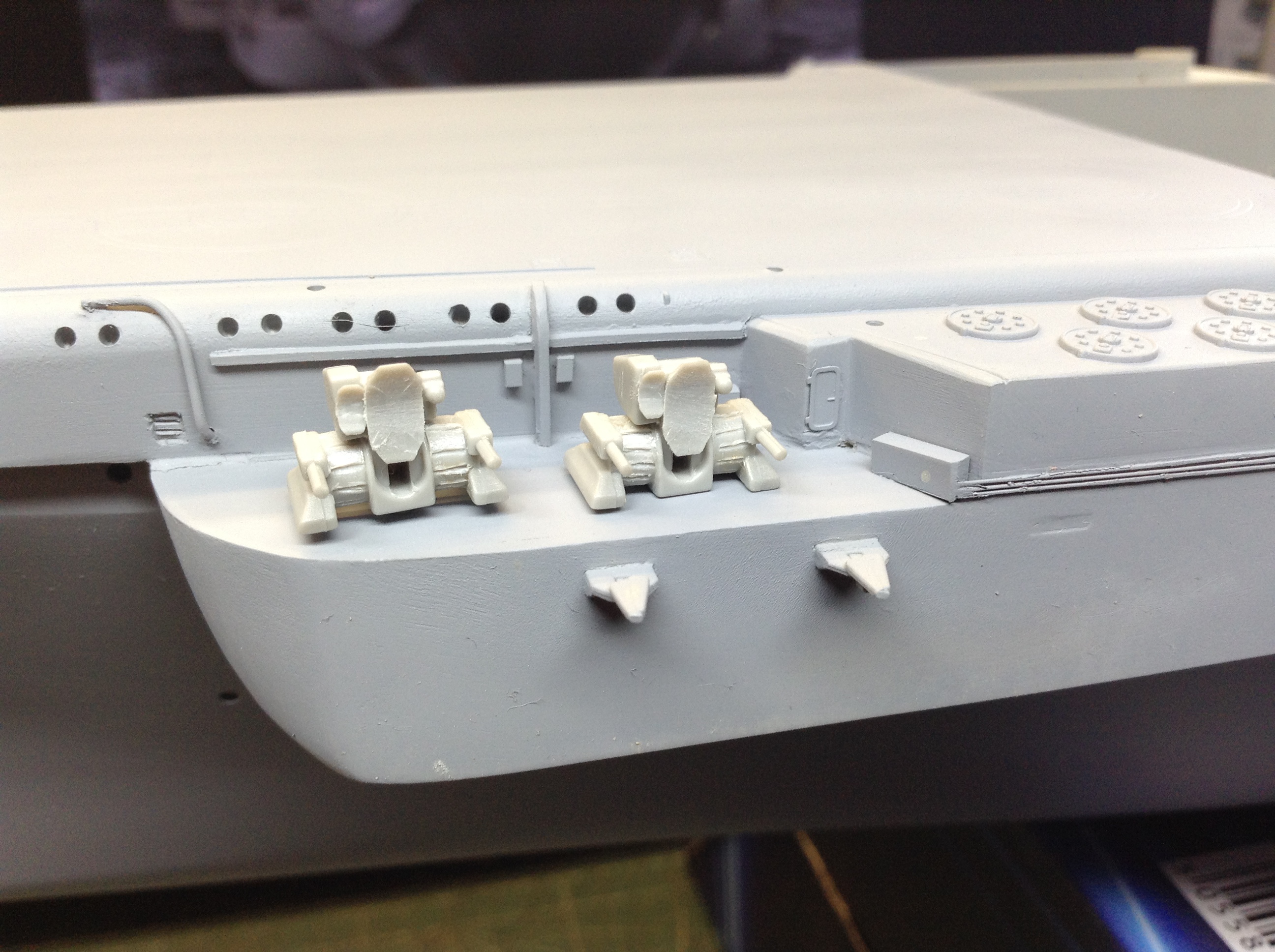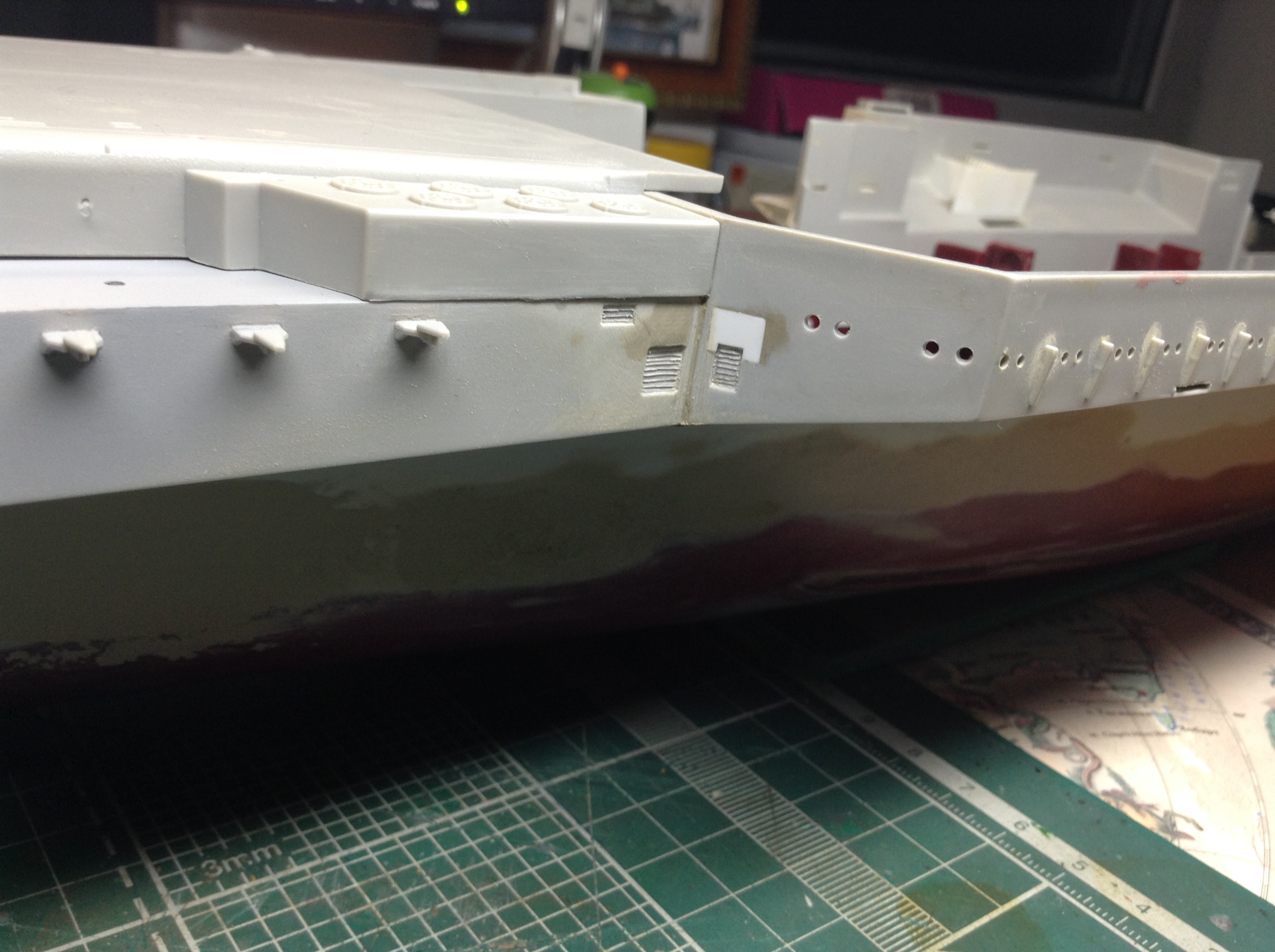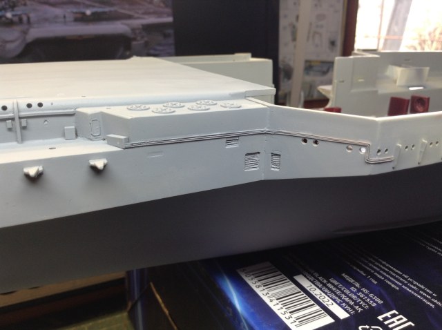 Дело в том что этот участок борта у "Трумпетера " Совершенно  Гладкий! Не отображены не трубопроводы ,не кабельные трассы, не иллюминаторы не решетки -жалюзи. Я исправил "это дело " ,и вот что у меня получилось.