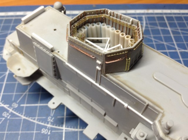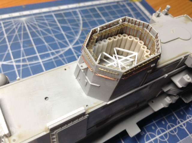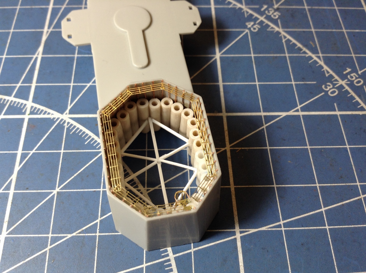 После чего обклеил трубу снаружи- "деталями наружной обшивки" из набора. (см. схему сборки модели от "Trumpeter"