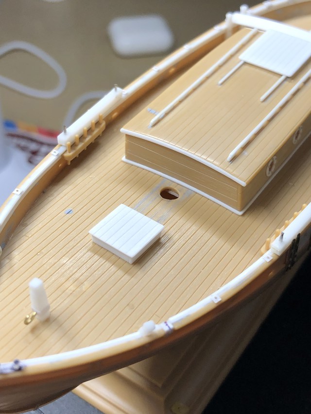 добавлю пару фоток с кормы. Палубные детали все готовы, работаю теперь над леерным ограждением и кормовой аркой