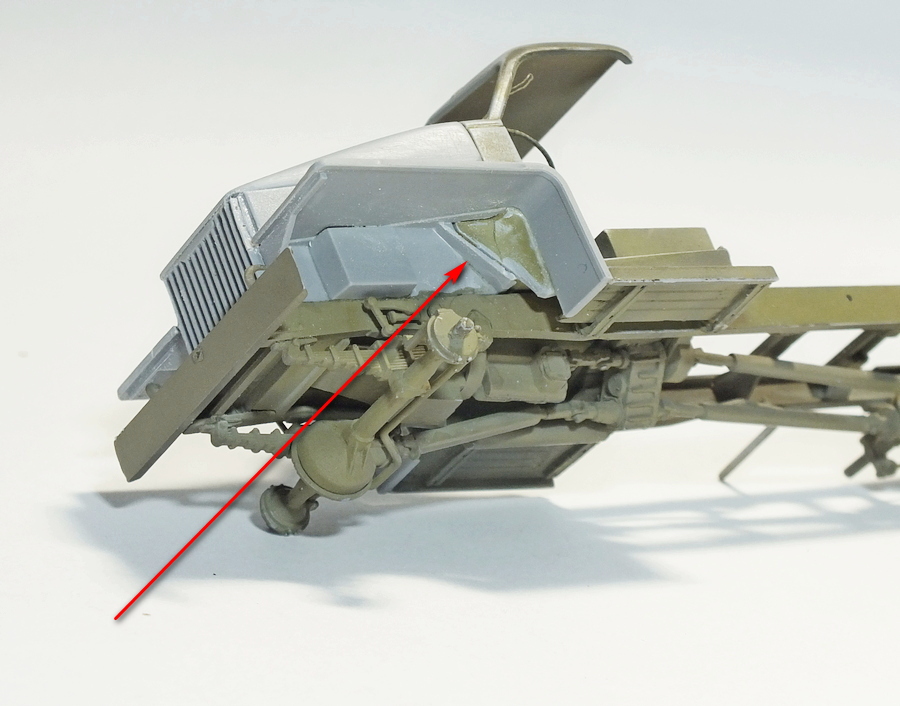 И снова здравствуйте.Выдалось немного времени по моделить,по сему продолжил стройку.А именно-установил задние крылья на раму и сточил толстенные посадочные шпеньки от которых за версту веяло игрушечностью (на первой модели я это почему-то сделать не догадался),поставил на место кожух поворотного механизма установки.