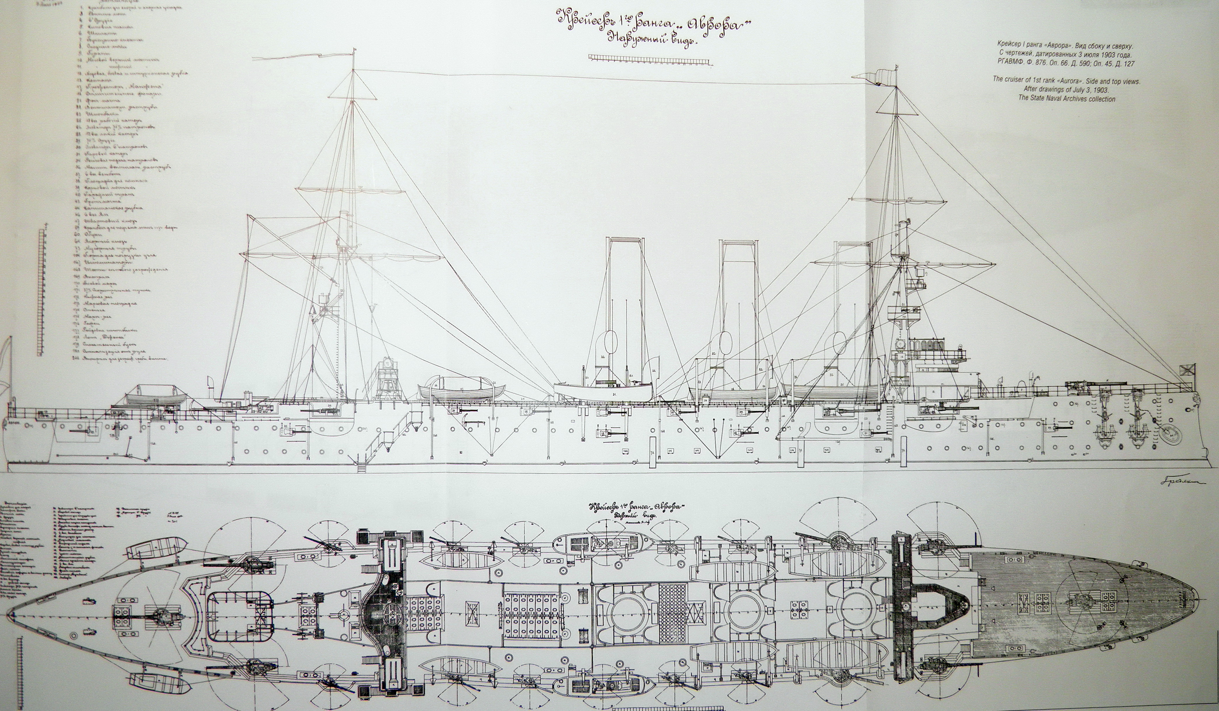 Я вот что подумал: в ЦМВС есть грандиозная модель Авроры, кажется 1/48. Может надо её тоже изучить? Там она как раз на 1917 год. -а нет! нашёл её фото - на Цусиму там модель.