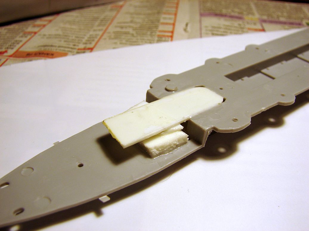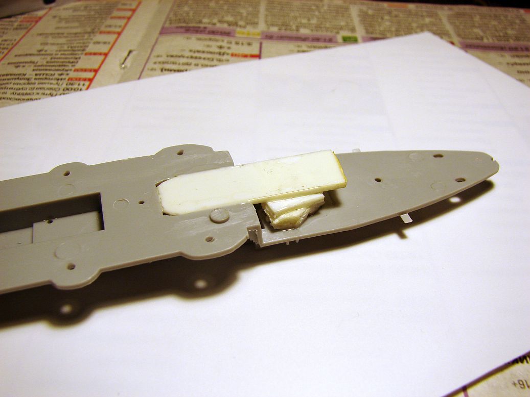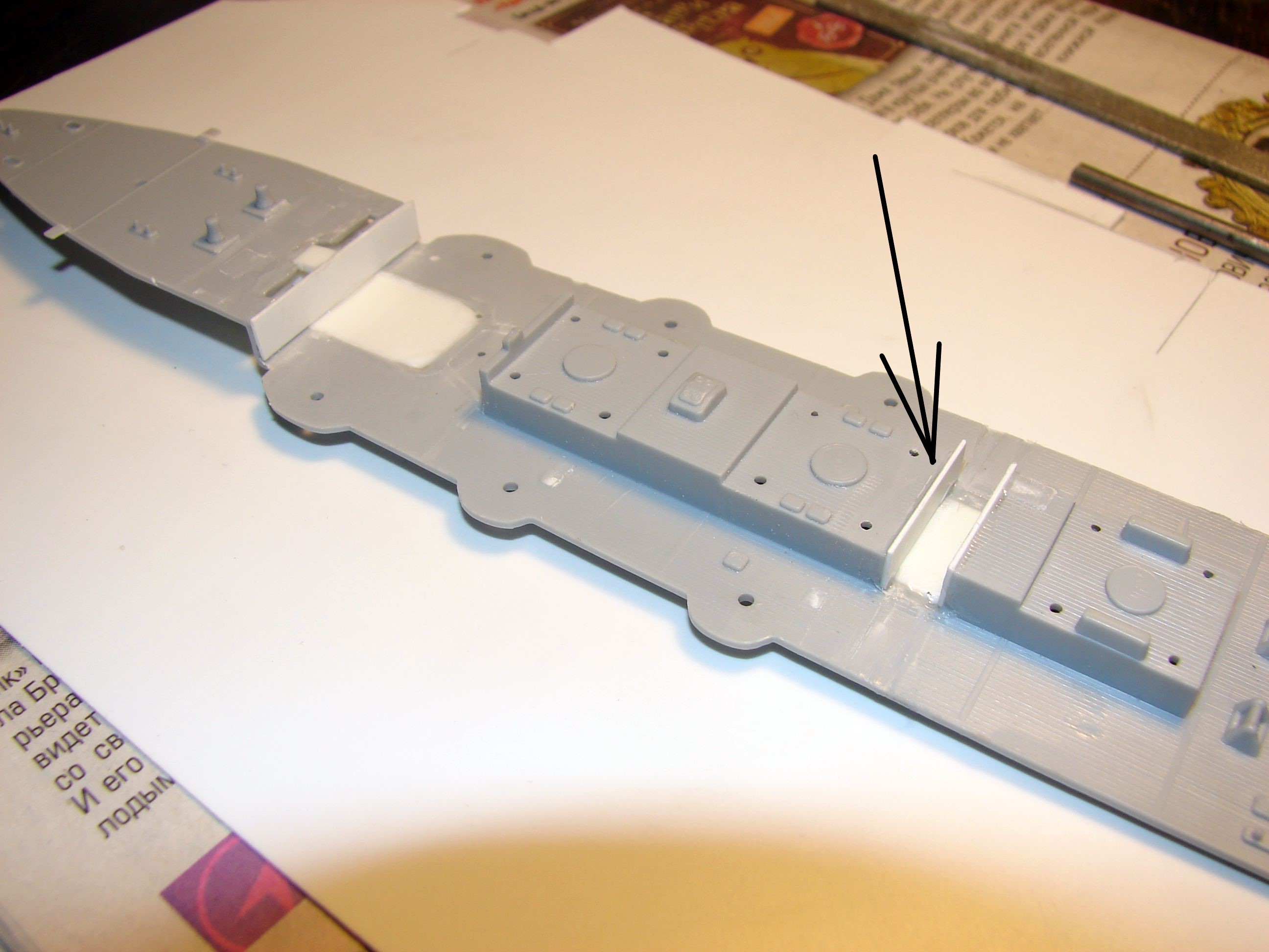 Пилим потихоньку. У Моделиста место основания боевой рубки на главной палубе даётся так. Я думаю, что картонный вариант более ближе к истине. На всякий случай, перед откусыванием пластика, укрепил место стыка палуб. Думаю и дербалуба может быть заточена под эту прелесть. Через пару дней придёт - посмотрим.