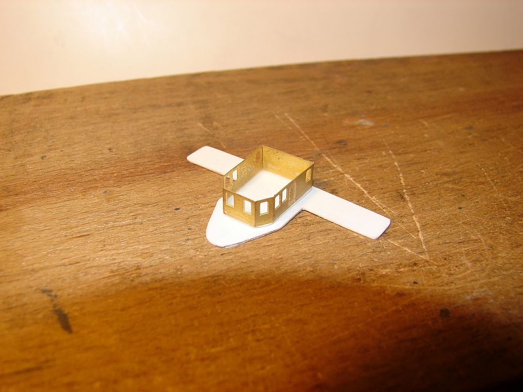 На главный или нижний пластиковый мостик (как и на всё остальное в коробке) можно смотреть только со слезами. Решил выпендриться - вырубил по размерам чертежей. А он, собака, по длине не подходит - место мачты уходит далеко вперёд и образуется пустота на палубе. Пришлось нарастить встык полоску шириной 2,2 мм на мостик, т.е. почти вернуться к длине пластика и оставить мачту почти на старом месте.