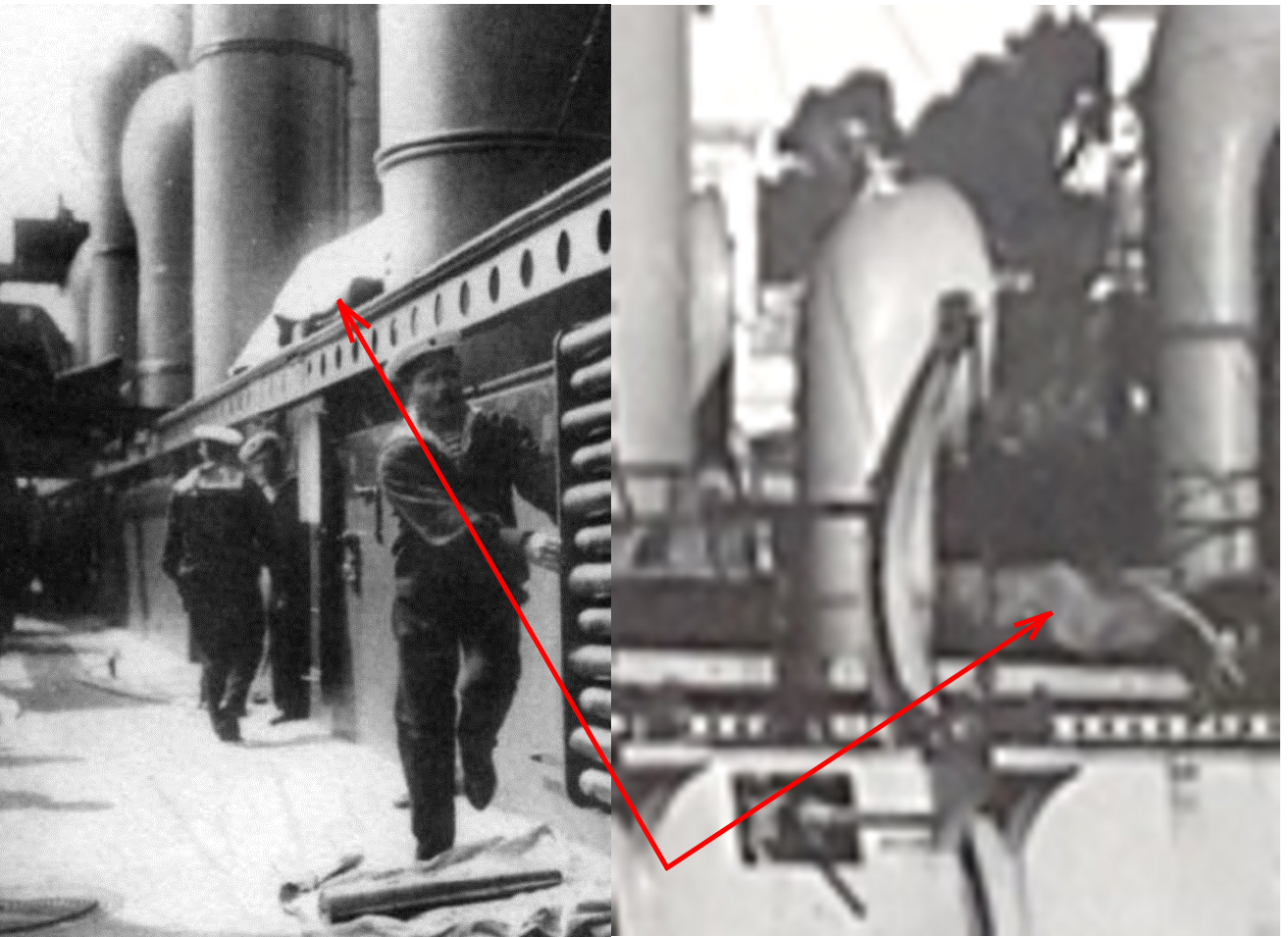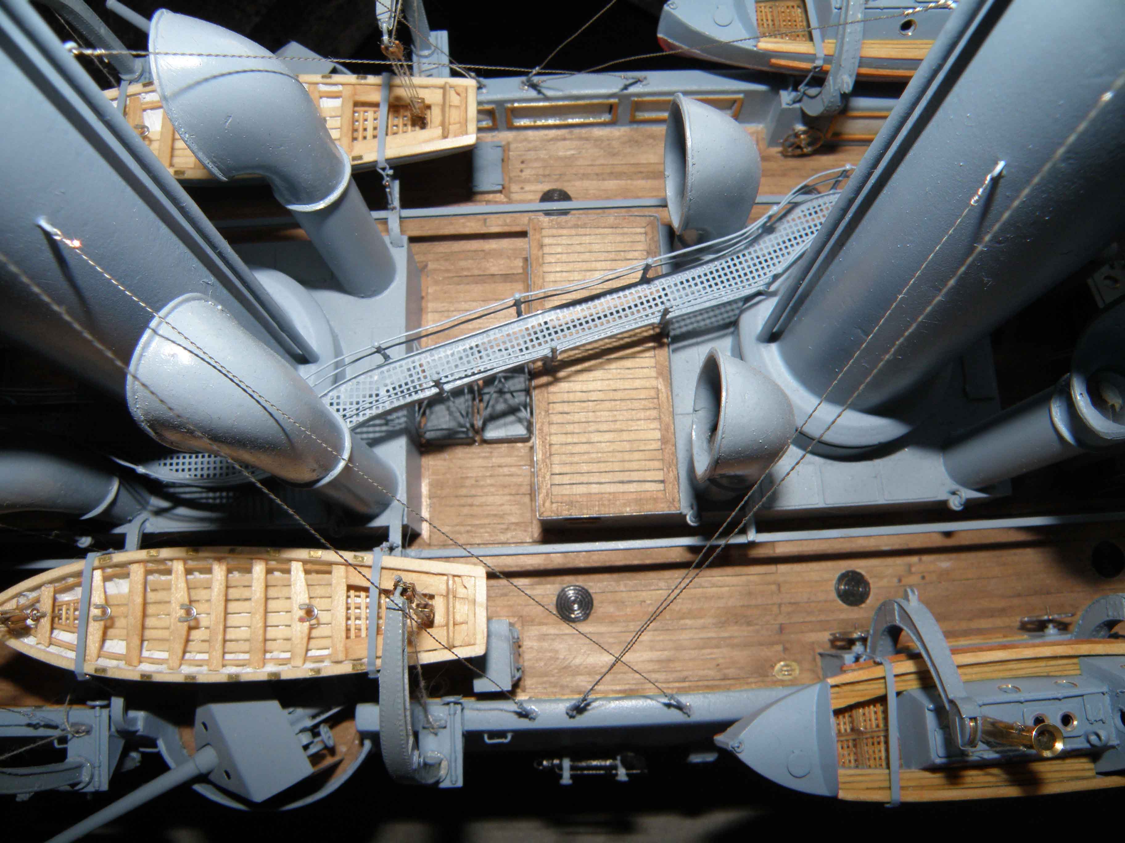 Непонятного меньше не стало. Какого цвета якоря? А на основном для ориентировки фото даже цепной клюз кажется чёрным… Куда делась прожекторная площадка фока на этом фото? Что лежало на надстройках – линолеум или дерпалуба? И, может, на каких-то – одно, а на других - другое? Вот на кормовой надстройке и такое могло быть (фото 069).