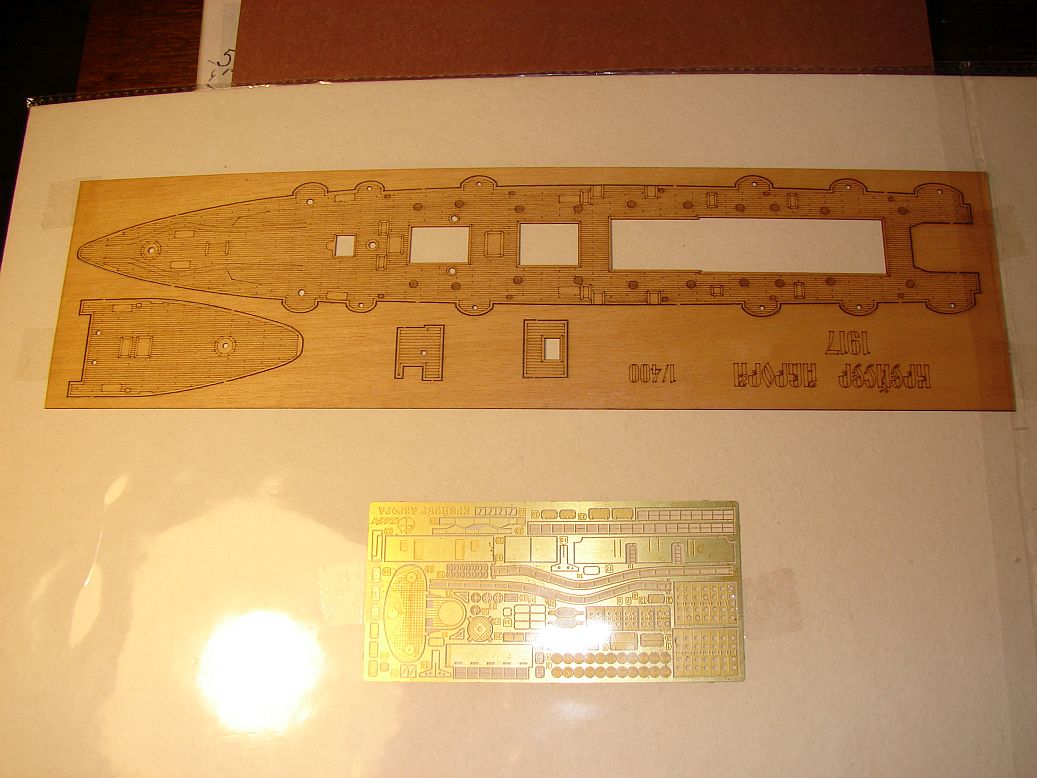 А дерпалуба от Эскадры впечатлила. Упакована очень солидно. Сделана на ощуп довольно качественно. Как ляжет, ясное дело, пока сказать не могу. К тому же есть травление, коим можно не только палубу облагородить, но и сделать кормовую надстройку на 1917 год. Мне это не шибко надо - в травле от МД это всё есть, но приятно. Лишнего травла не бывает.
