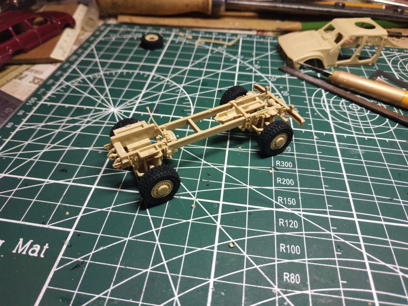 что могу сказать - модель джипа классная. своих денег стоит. еще не готова до конца, но осталось чуть чуть. верх к низу пока приклеивать не буду. там внутри очень много чего красить, если склею не долезу и ломать пока тоже не буду, прикину на месте когда дома начну делать.
