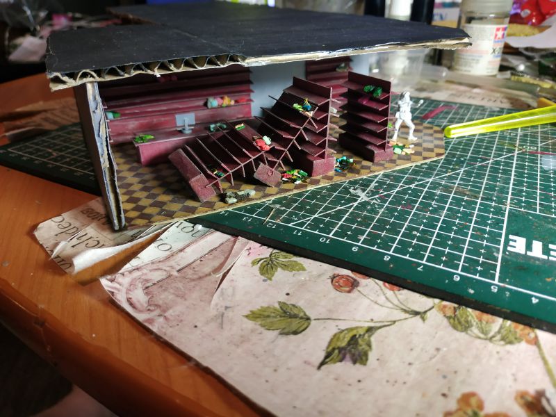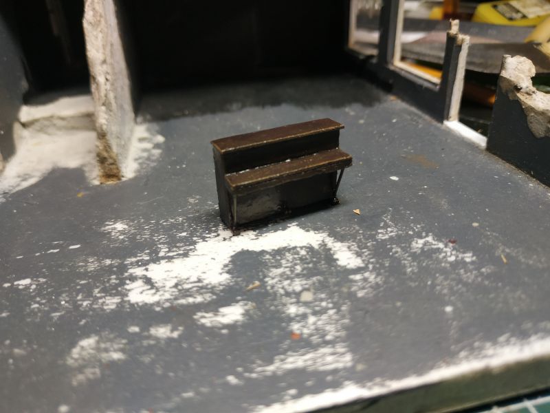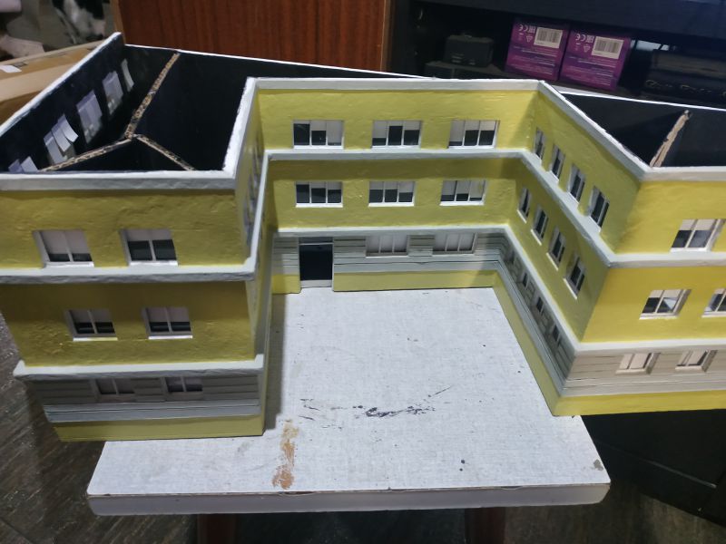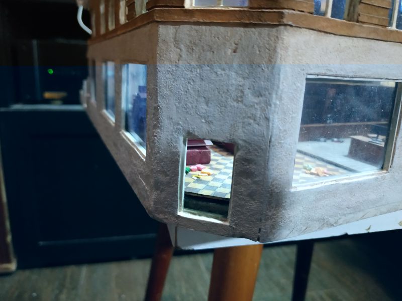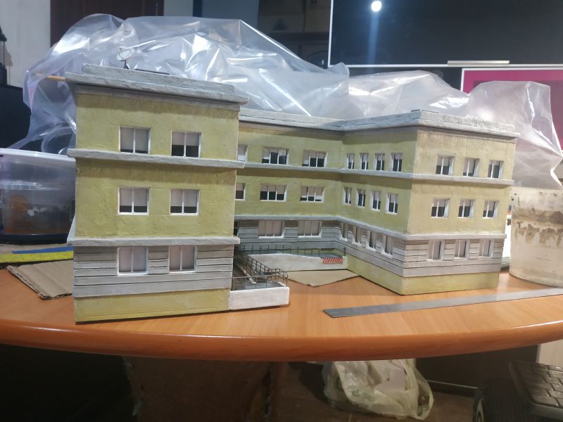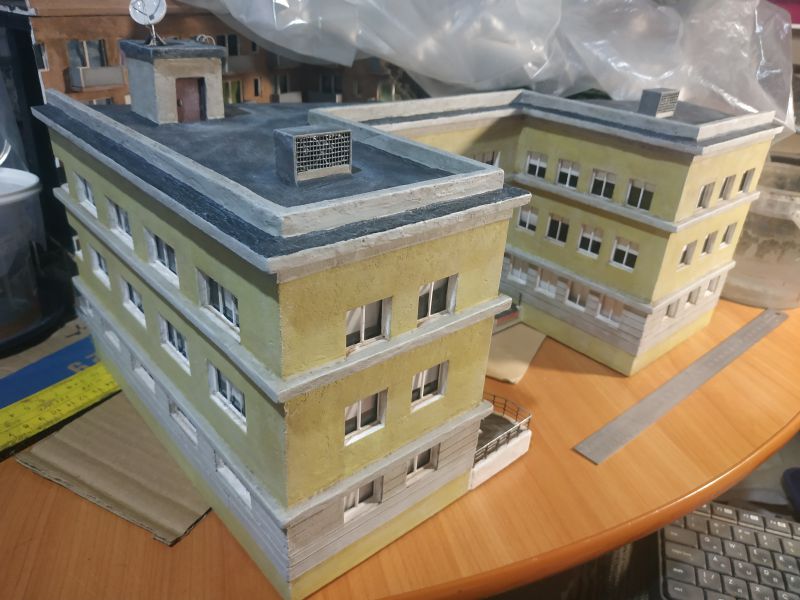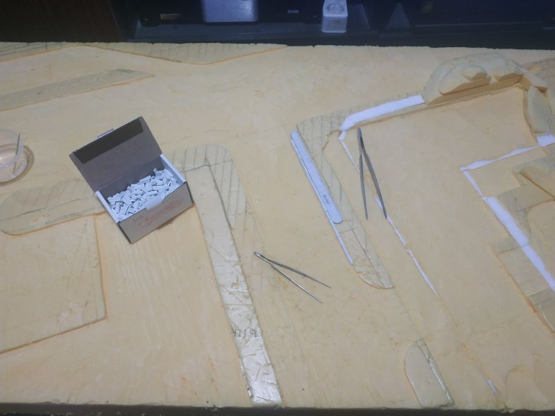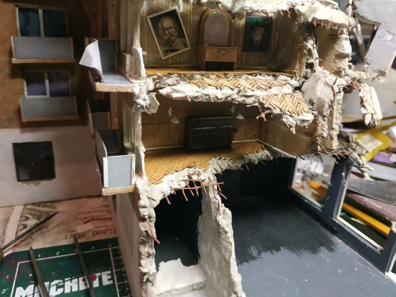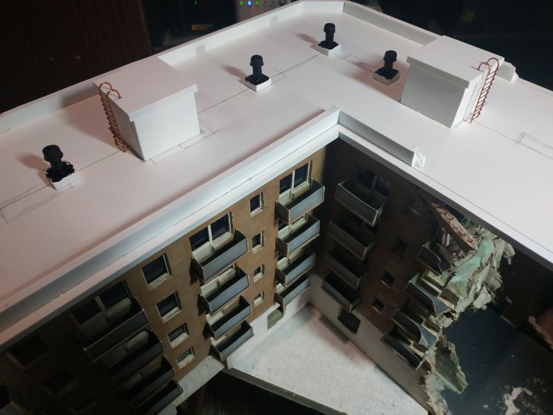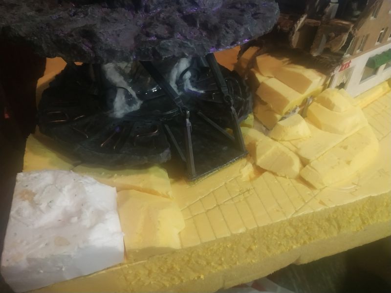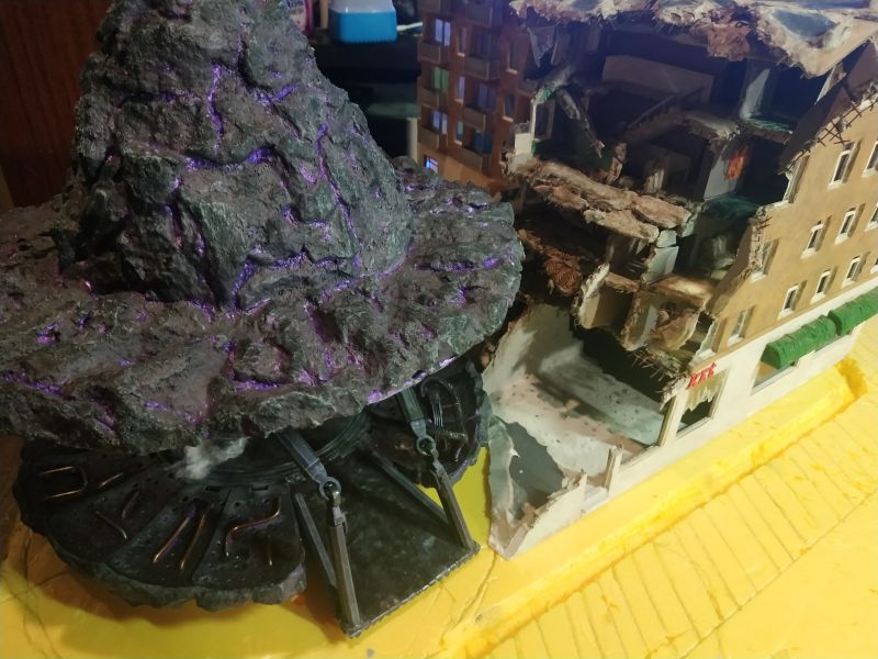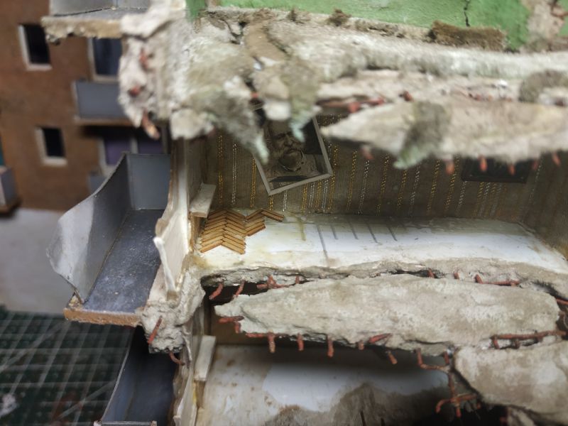 Примерил разрушенный дом и то что его разрушило. Склеил основу для мусора вокруг дома и корабля. Приступаю к следующему домику.