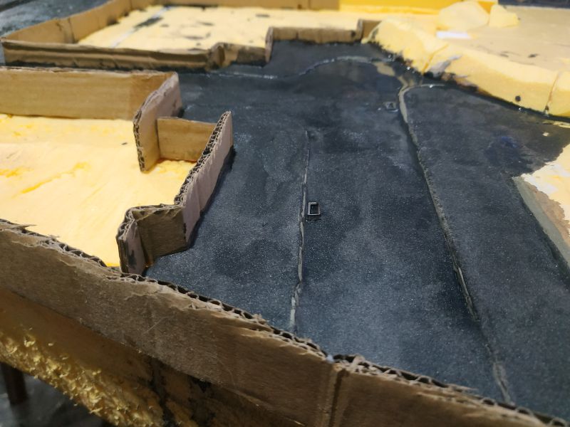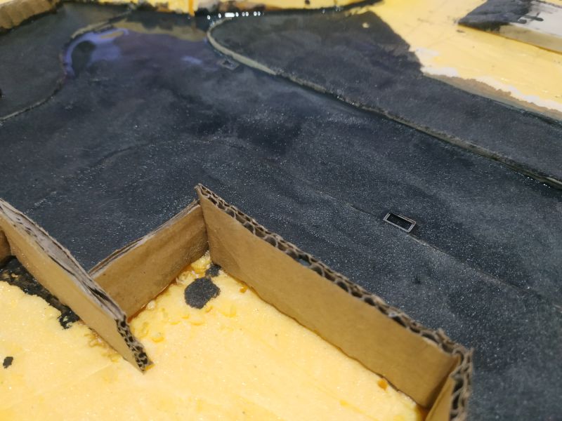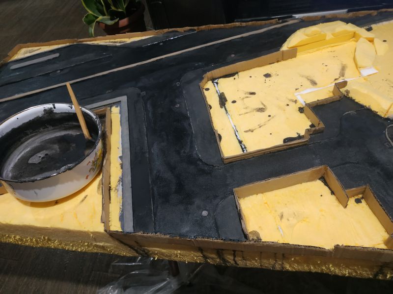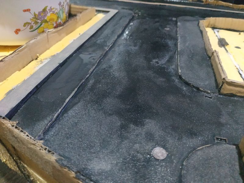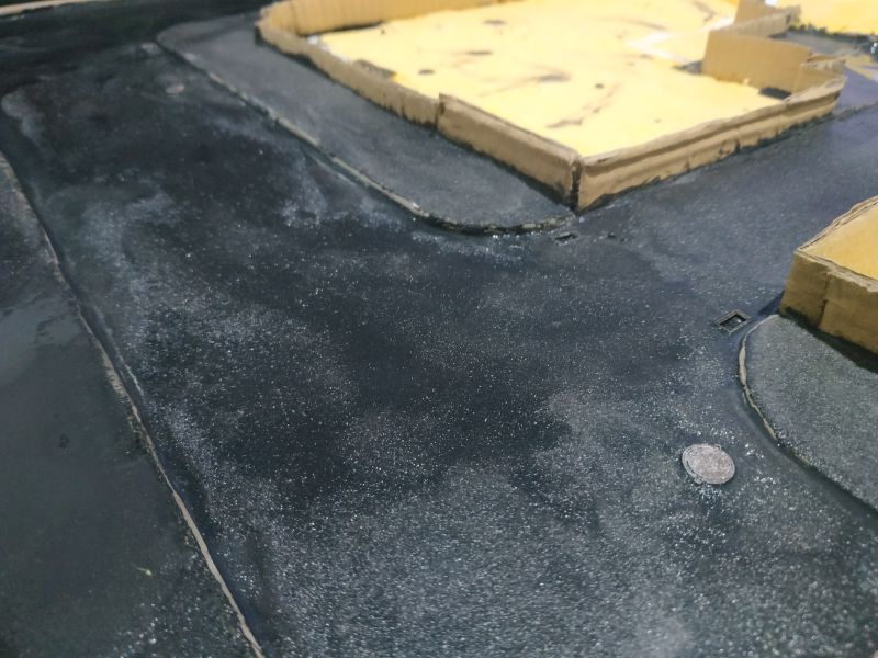 У меня наконец-то прорыв - начал асфальтовые работы. Заляпал все что мог, особенно бордюр. По итогу буду потом красить заново. Процесс не закончен.